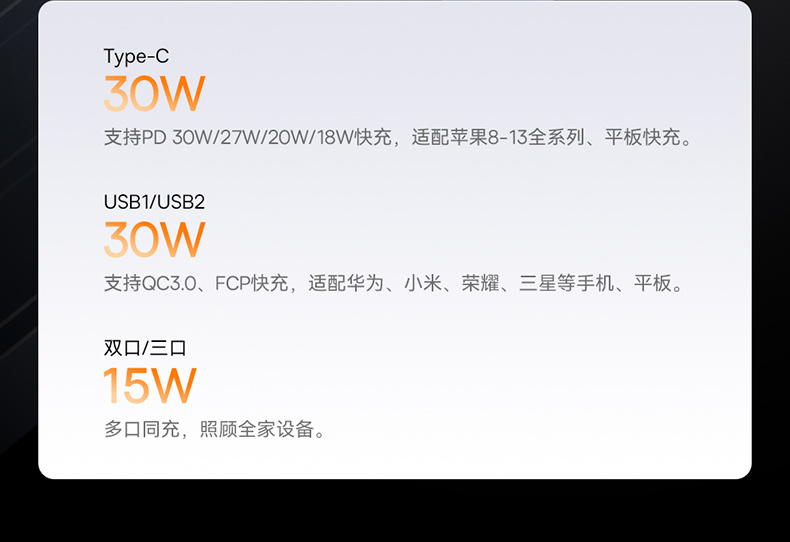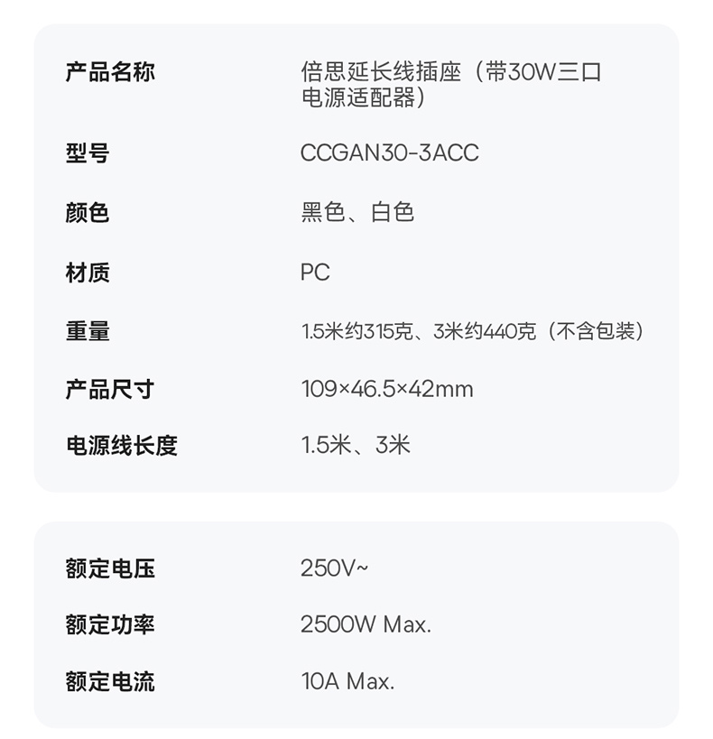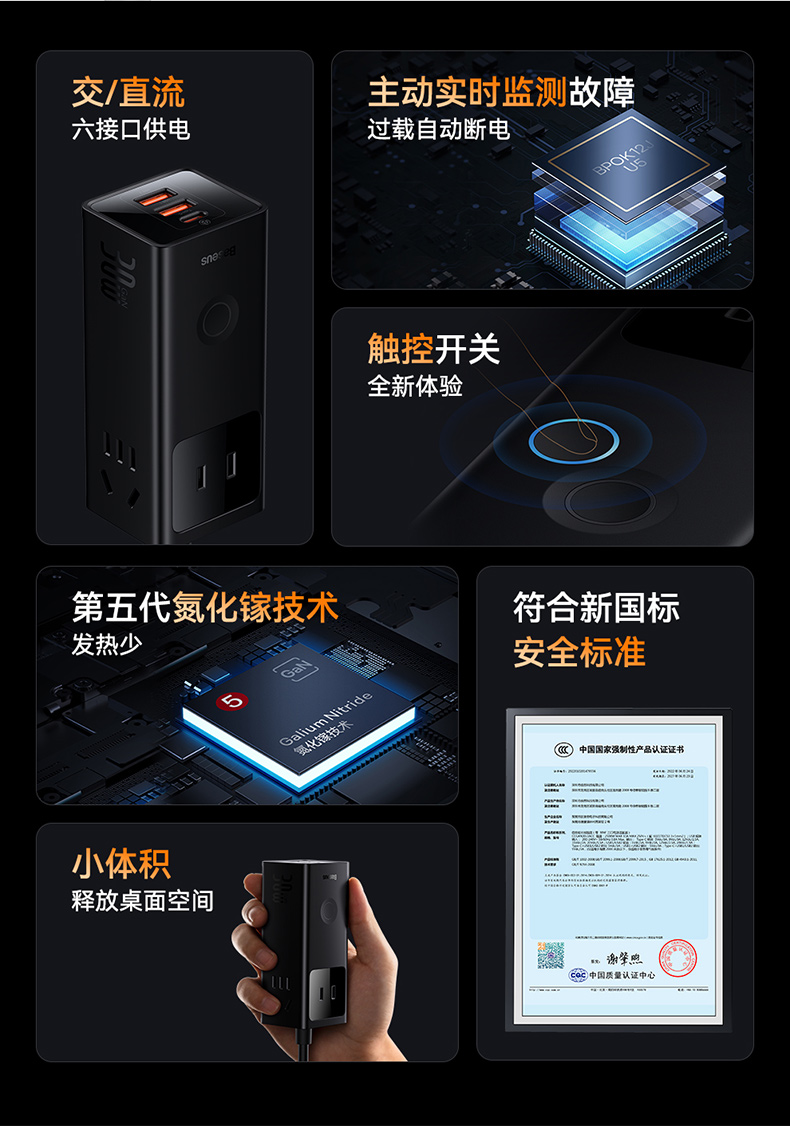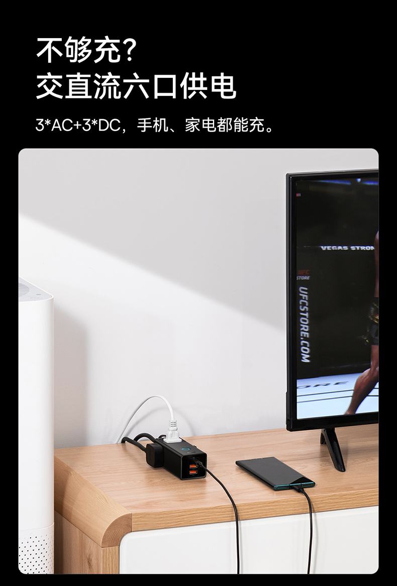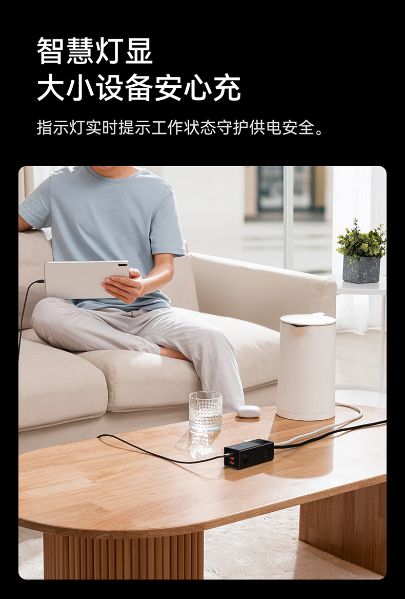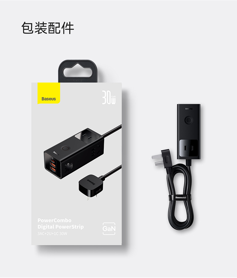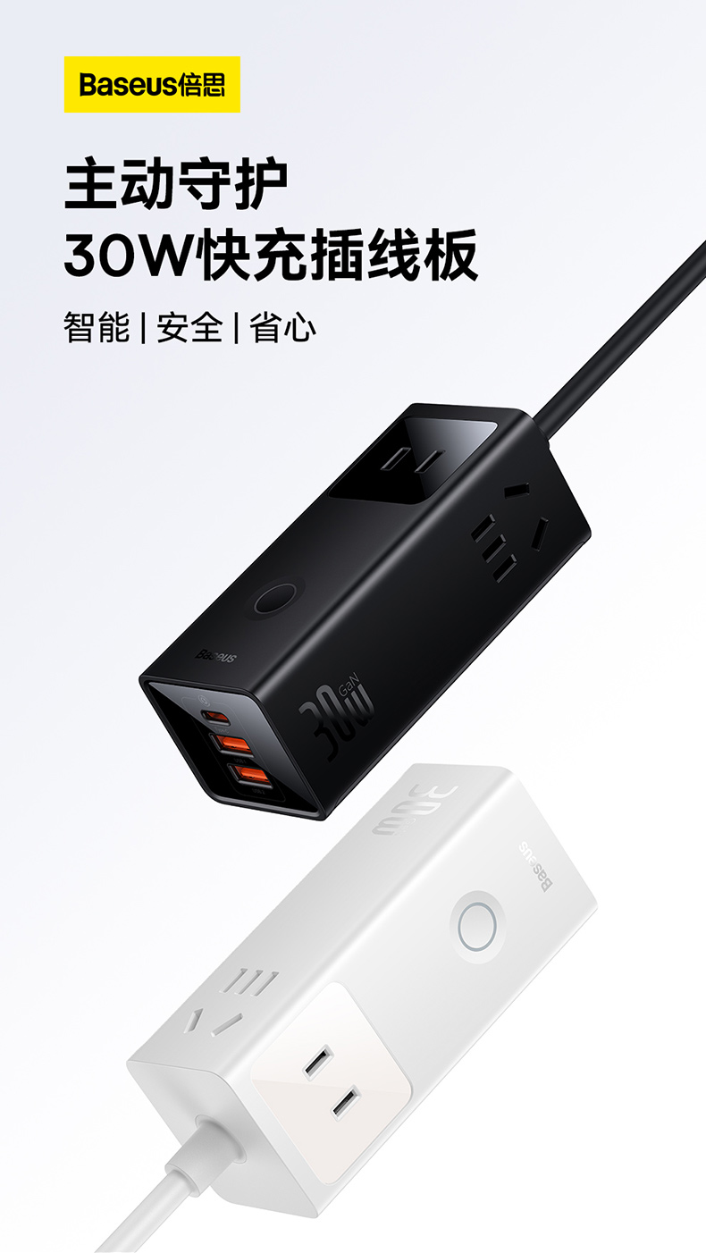倍思 6孔 30W/40W 灵傲数字式快充插线板 1.5m/3m