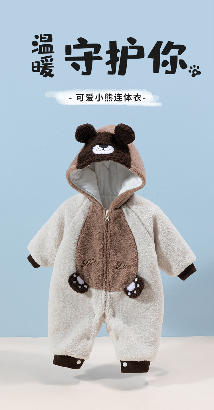 贝贝怡婴儿连体衣新款宝宝秋冬装外出抱衣哈衣爬服舒适睡衣JB4CL002