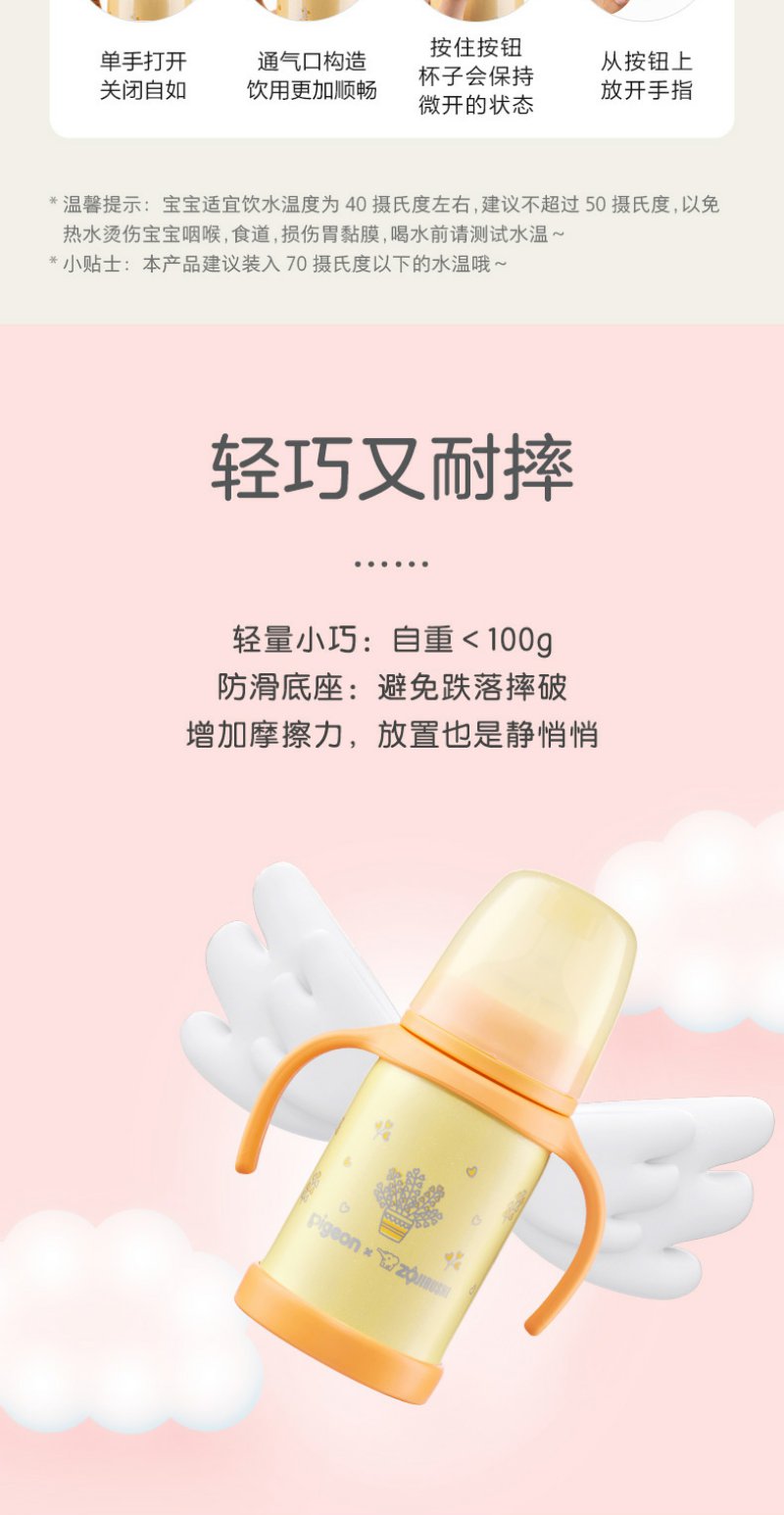 【6F】象印丨贝亲联名款保温杯/奶瓶/婴儿奶嘴杯/吸管杯12个月+小月龄水杯Pigeon BA24