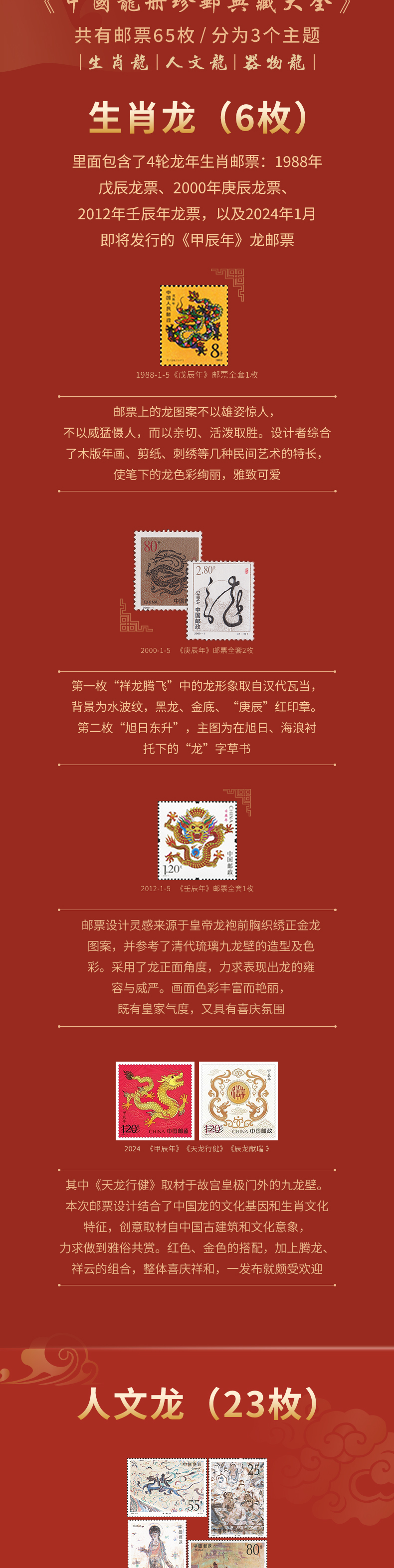 《中国龙册》珍邮典藏大全 1-4轮龙年邮票全齐收录 中国邮政发行 龙年专属礼