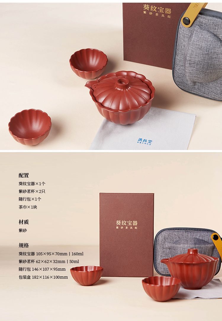 清朴堂-葵纹宝器紫砂便携茶具 随身茶具定制礼品