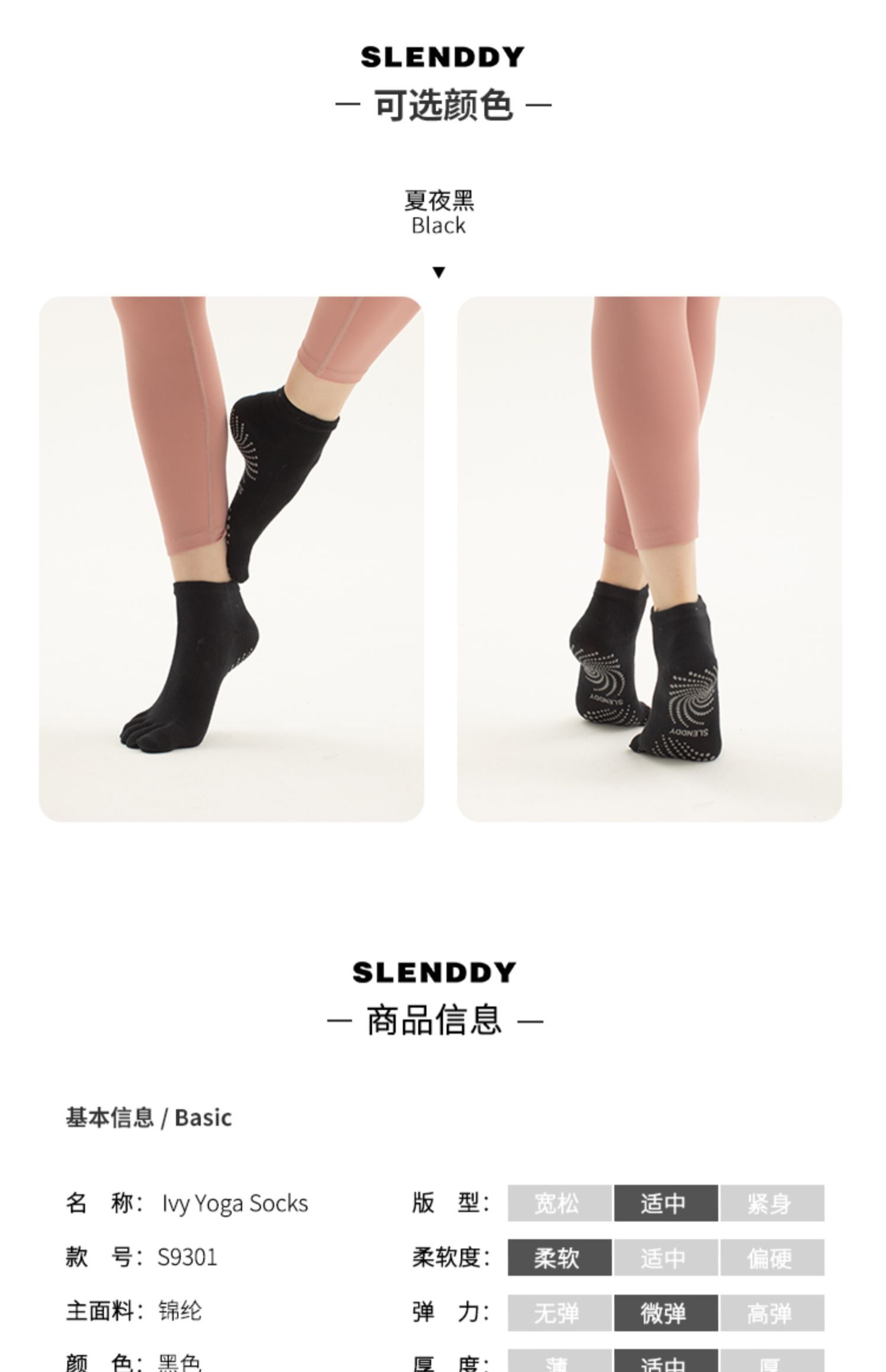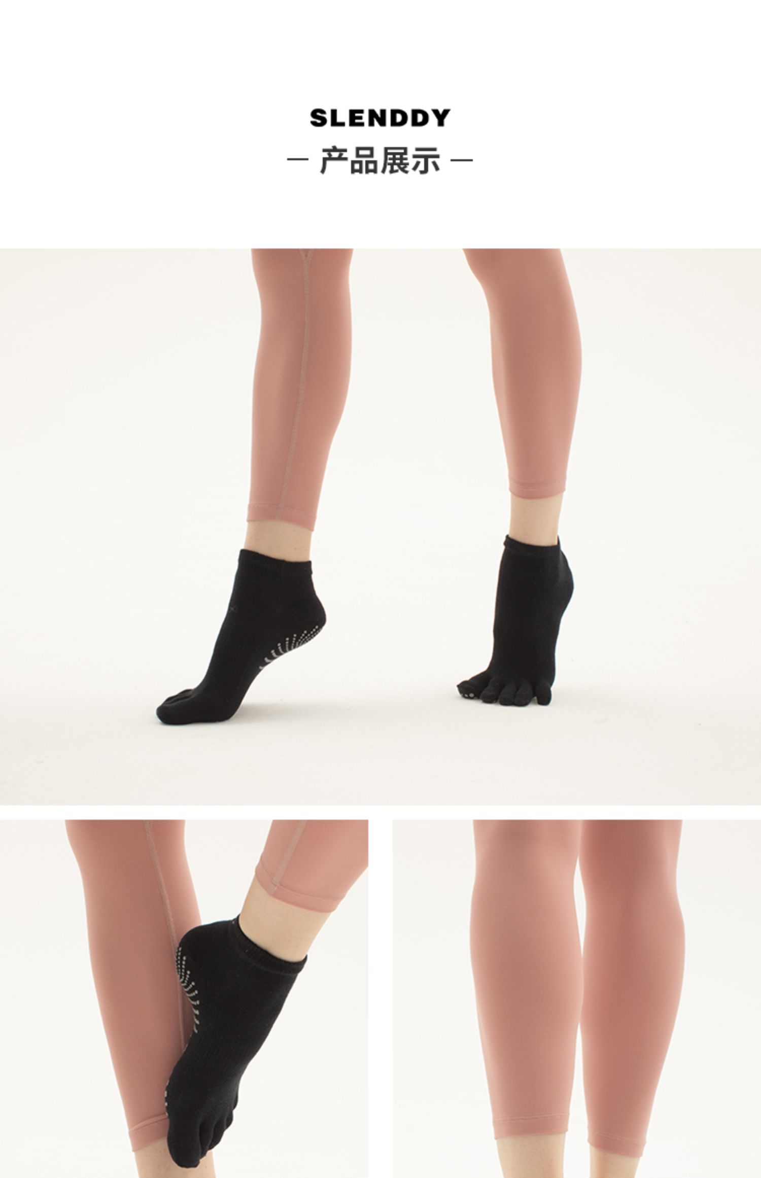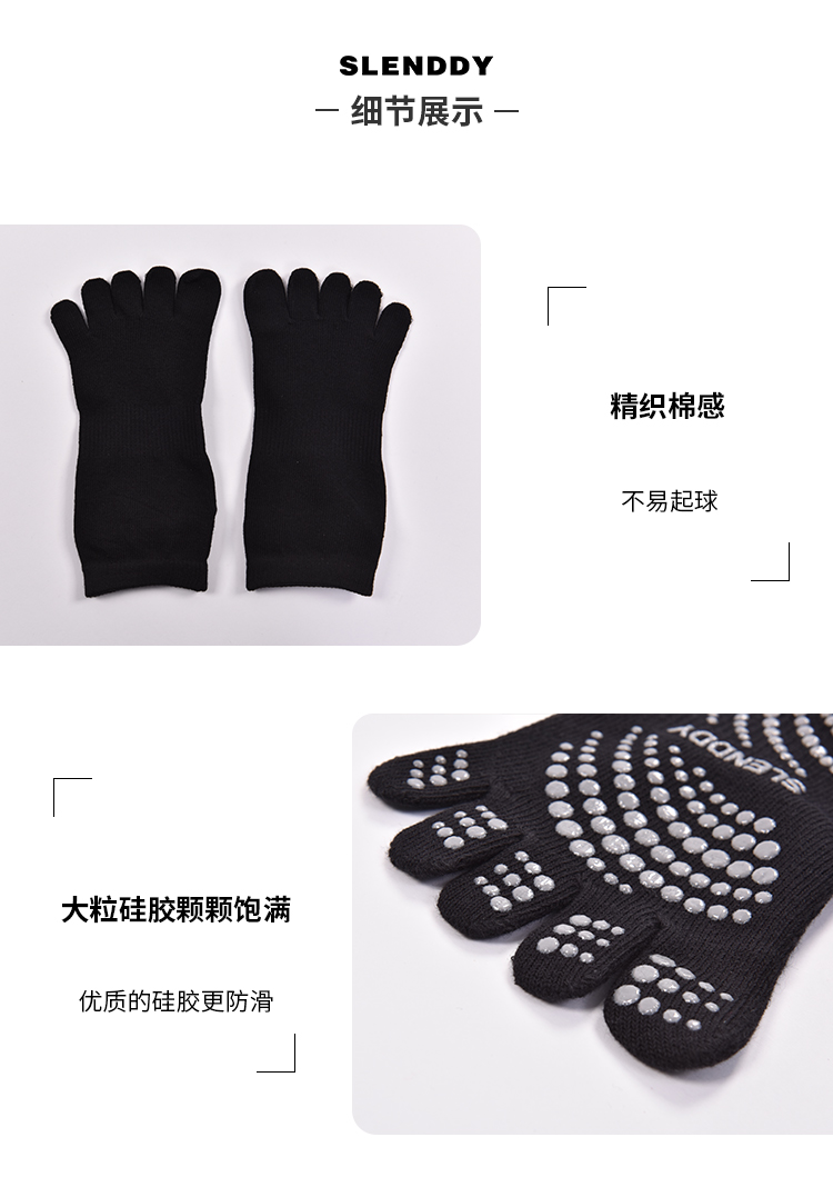 slenddy专业瑜伽五趾袜子普拉提室内乳胶防滑袜 运动健身专用