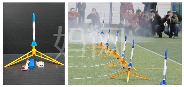 ◆ 发射火箭:制作一架小火箭,并发射到100多米高空,探索小火箭发射的高度与拍打瓶子用力大小的关系。 能积极动手,体验探索小火箭飞上天的乐趣。