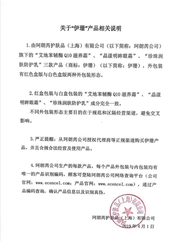 关于红白版说明:伊珊跟老粉秘密里的几个品牌不同,院线和线上版是没有成分差别的哦!伊珊做不同版本只是包装不同,完全为了做售卖渠道的区分,成分是完全一样的,有品牌商给到的证明文件,我也附上了。但白版专供线上相对便宜一点,院版红色的会贵一些,并且要等。我个人觉得,买白版就好了,我自己也用白版,一模一样的,便宜很多啊!