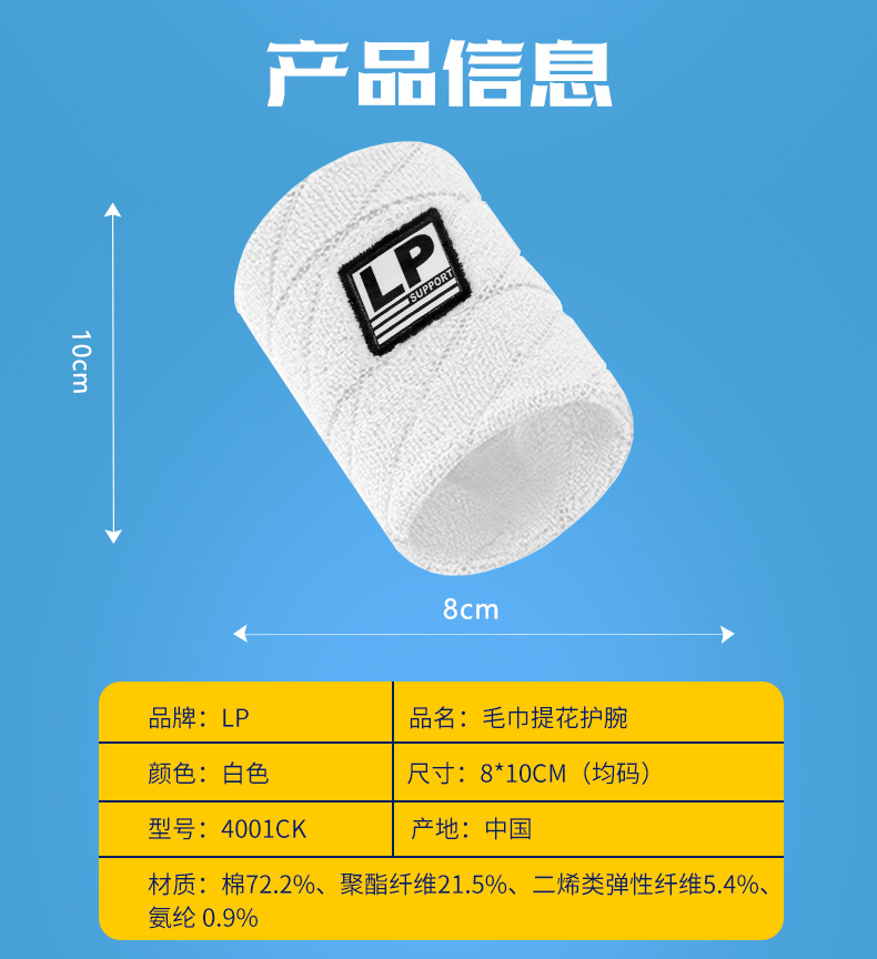 LP4001CK毛巾提花护腕 篮球羽毛球健身运动吸汗带LP护具