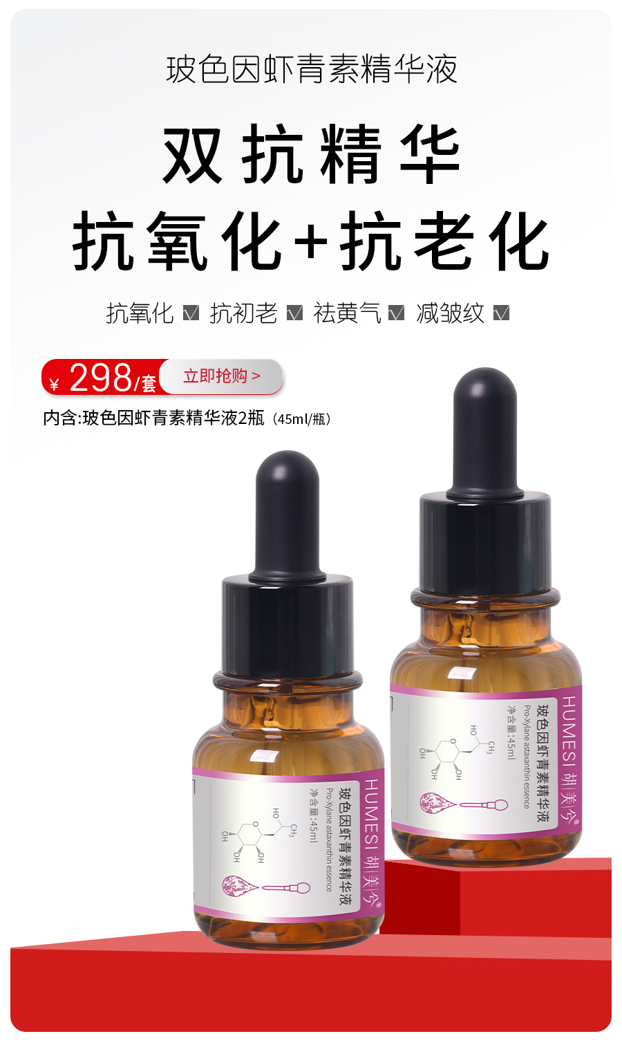 2瓶装 |去黄气必选| 玻色因虾青素精华液45ml/瓶|抗氧化抗初老