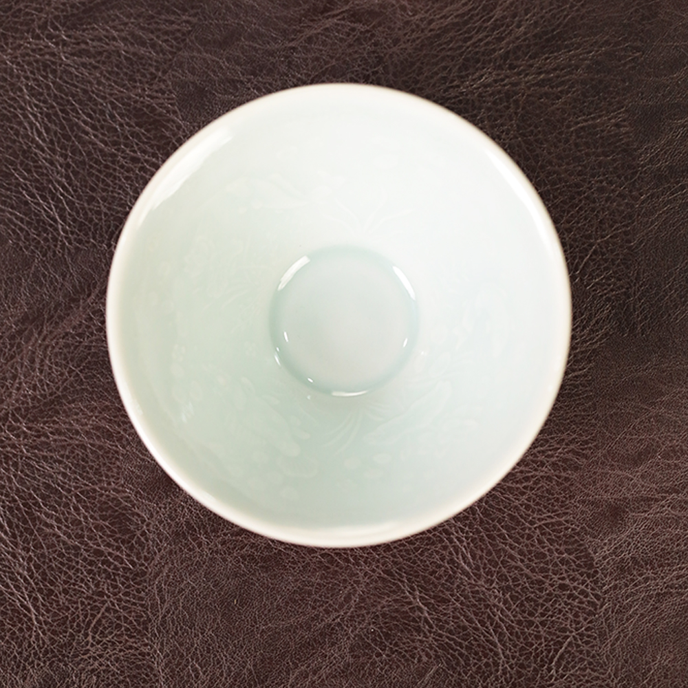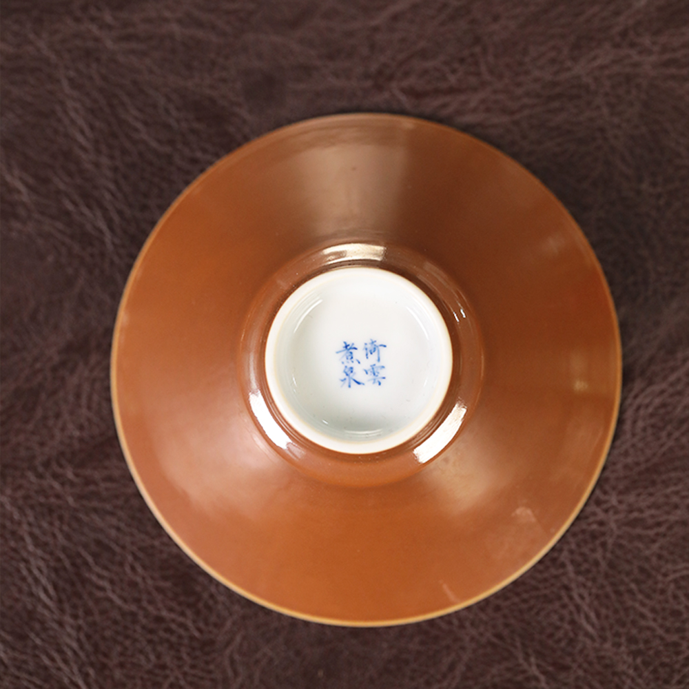 倚云煮泉 内模印 鱼藻纹 紫金釉 斗笠杯