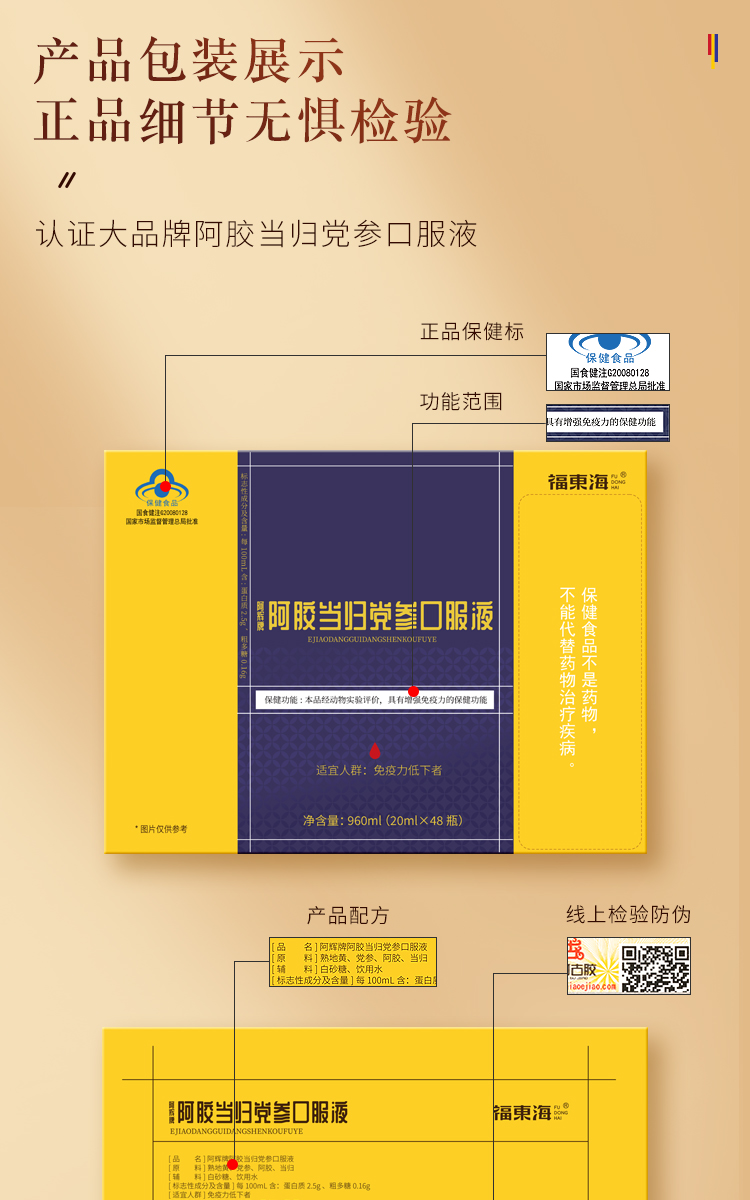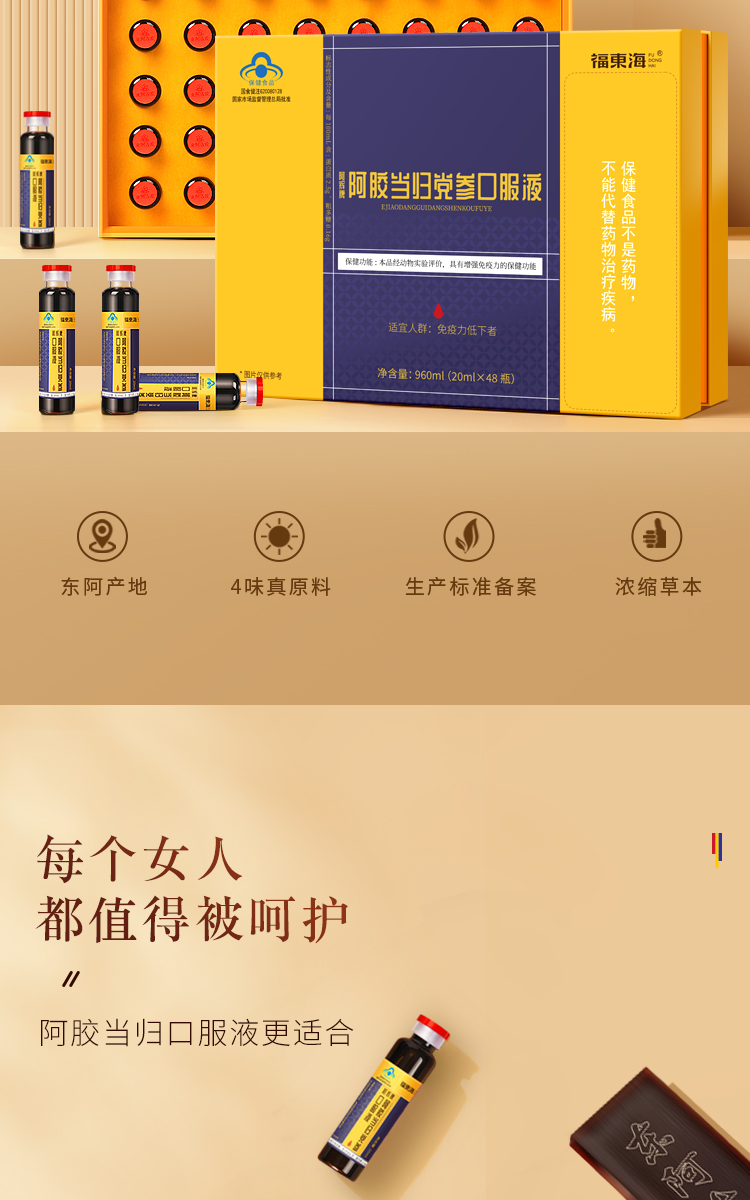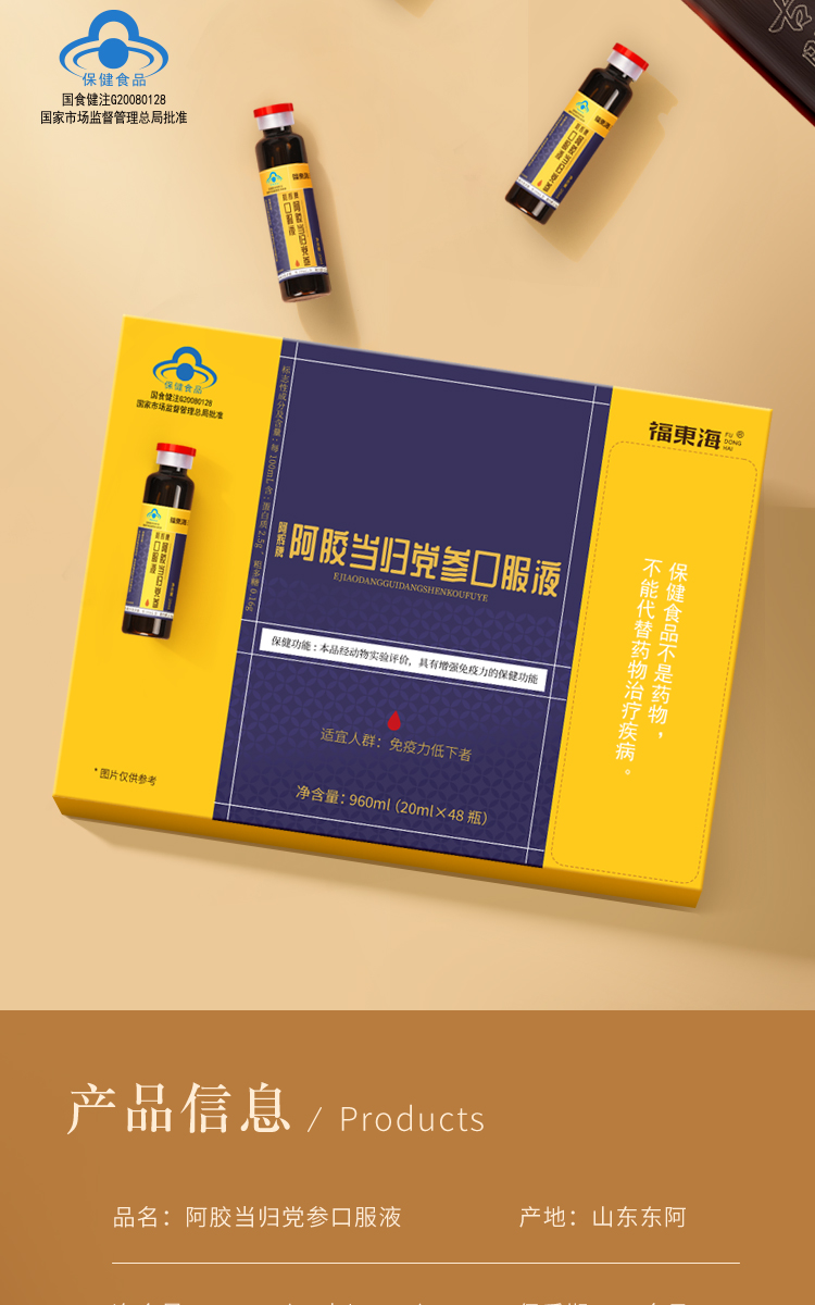 福东海 阿胶当归党参口服液960ml(48支*20ml) 阿胶当归党参口服液 送礼礼盒