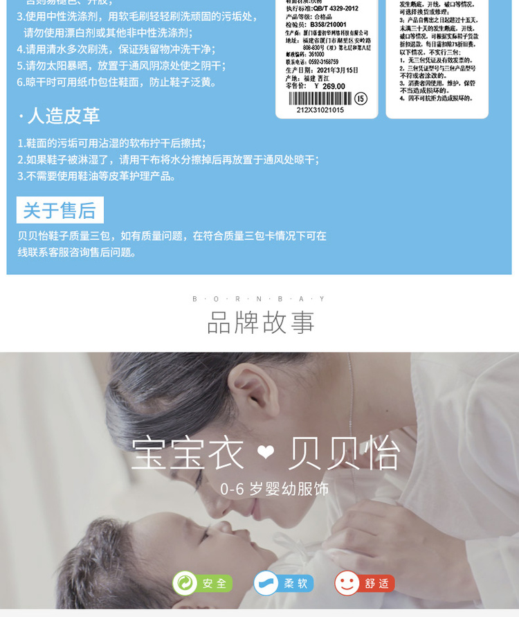 - 贝贝怡专注0-6岁婴幼儿服饰,坚持安全、柔软、舒适的产品理念,为千万中国家庭提供超高品质、安全可靠的婴幼儿服饰产品,妈妈放心,宝宝开心!