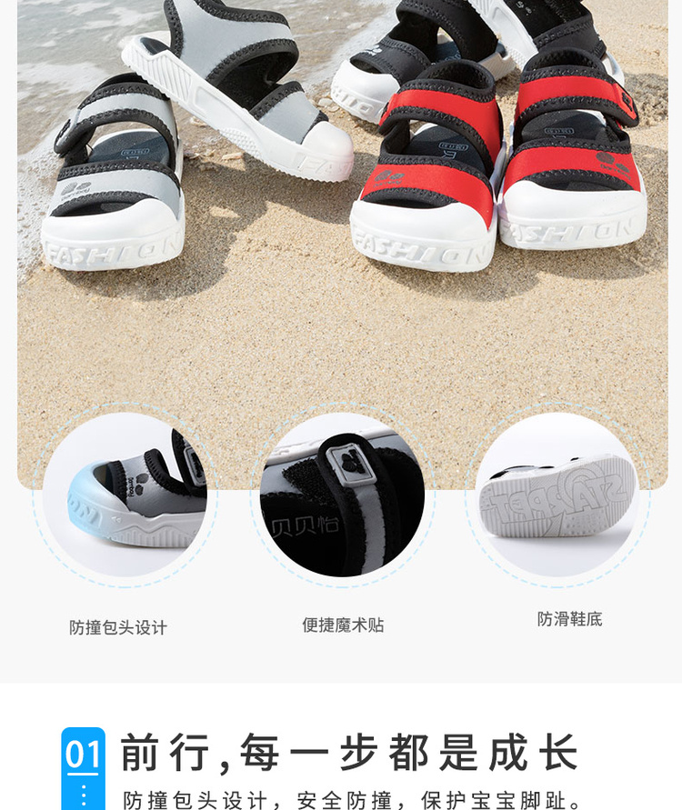 贝贝怡男童女童夏季新款宝宝时尚软底防滑透气学步鞋童鞋
