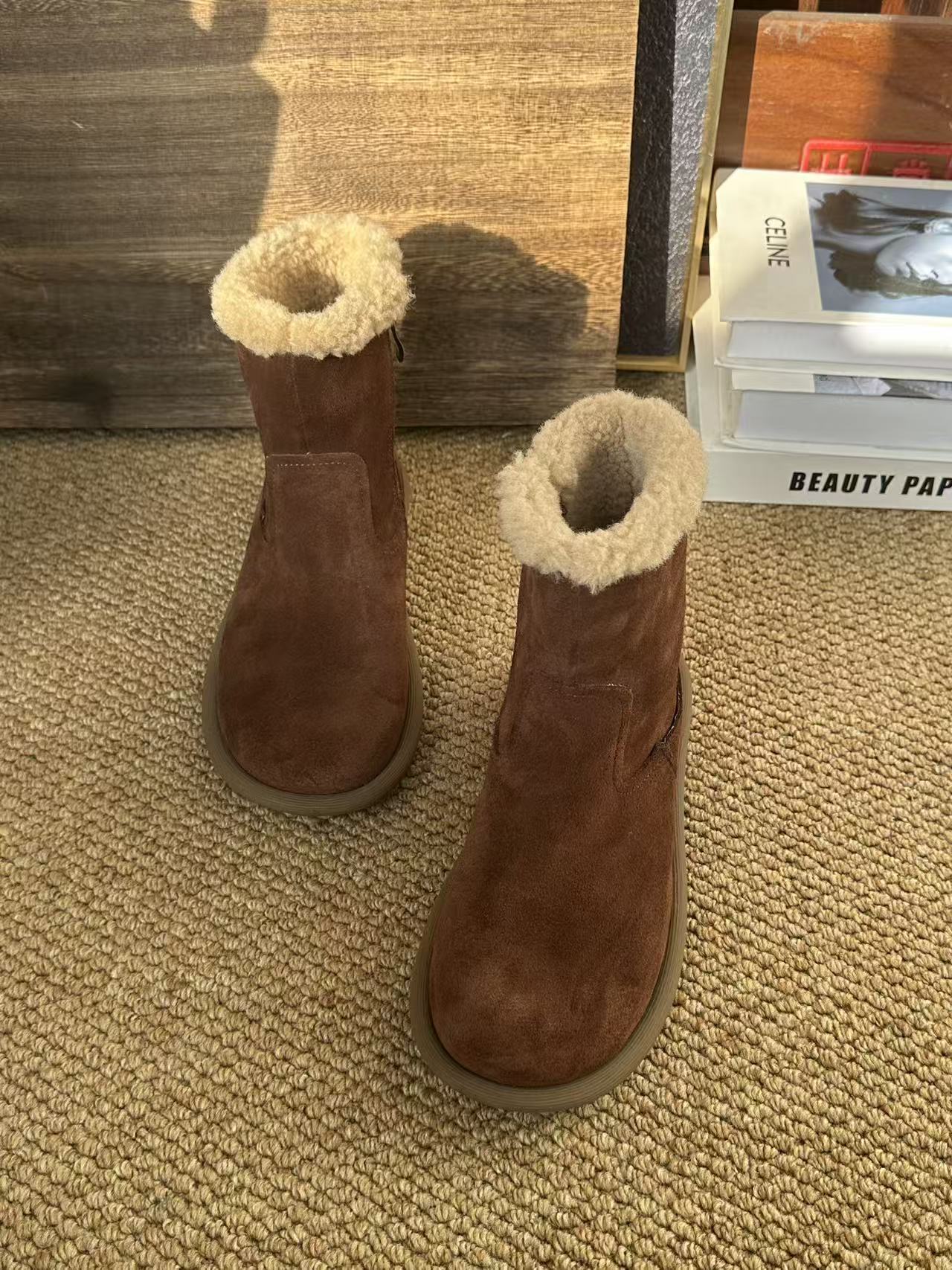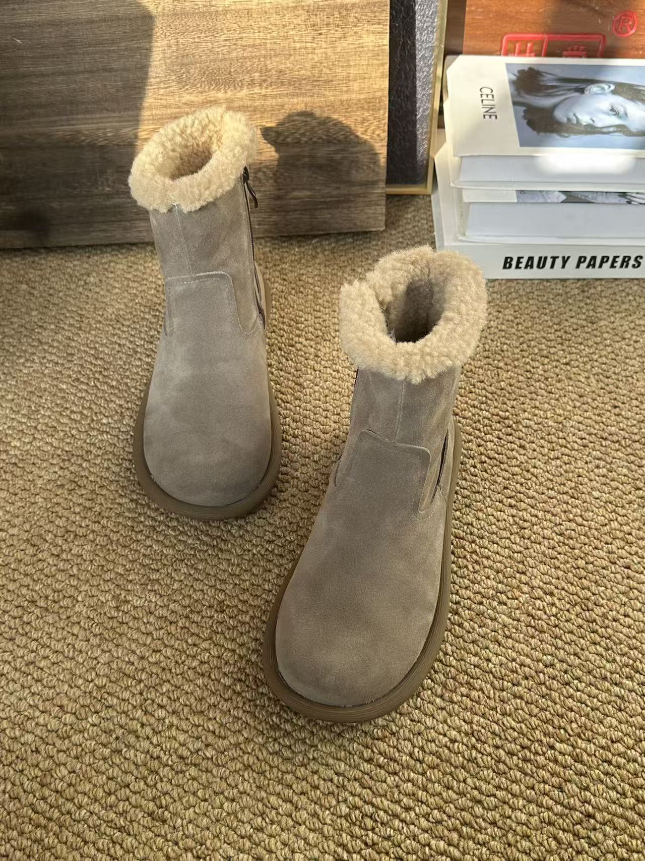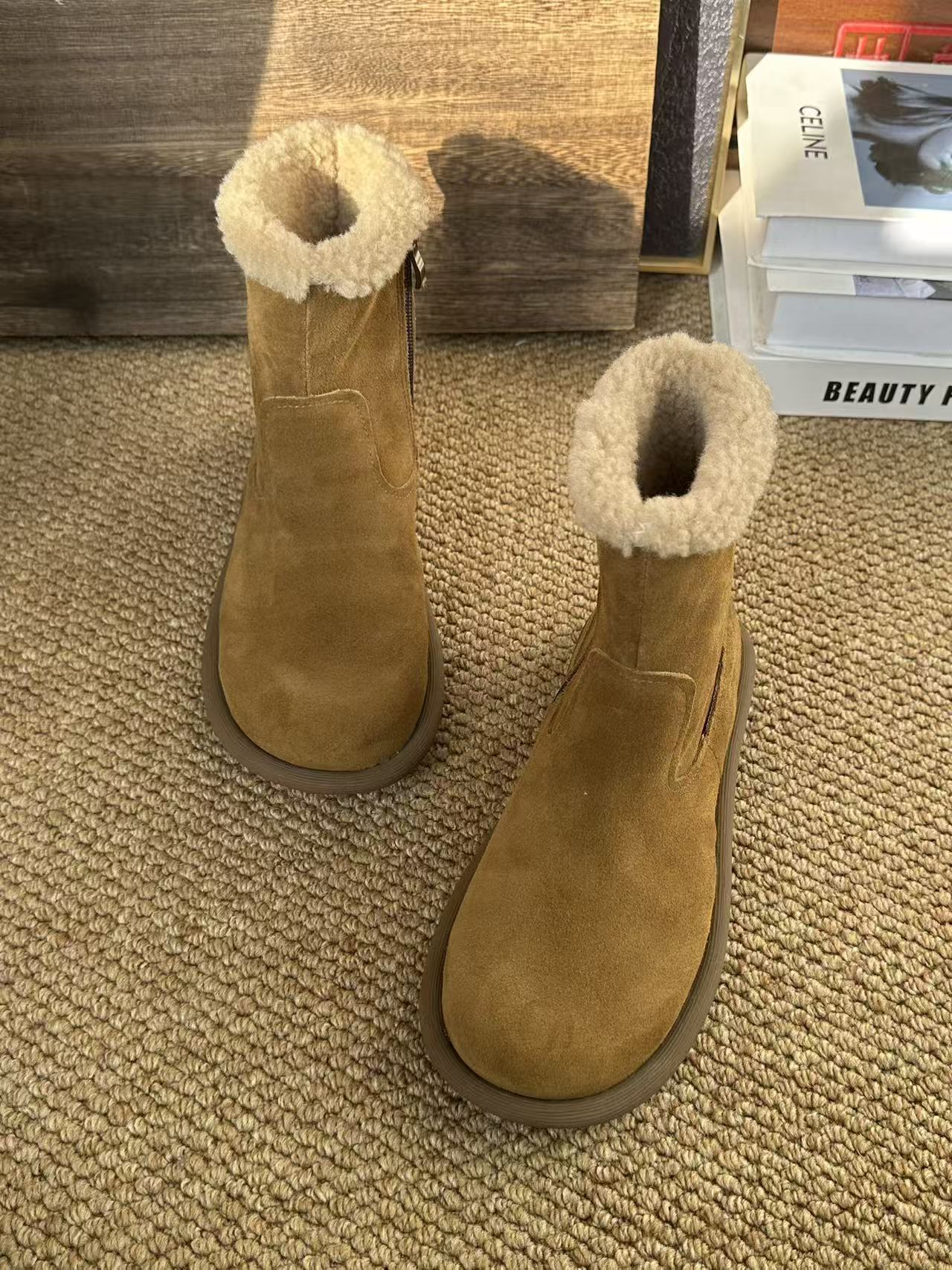 加绒保暖小暖炉!2025雪地靴反绒牛皮侧拉链休闲韩版棉靴女款! 商品图0