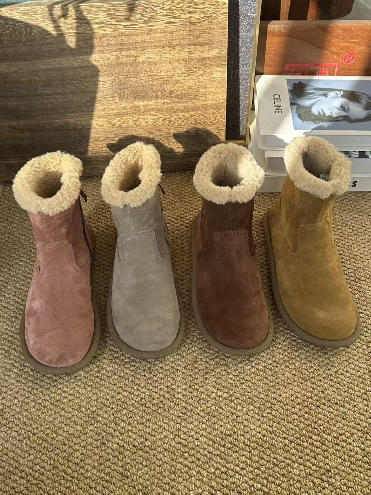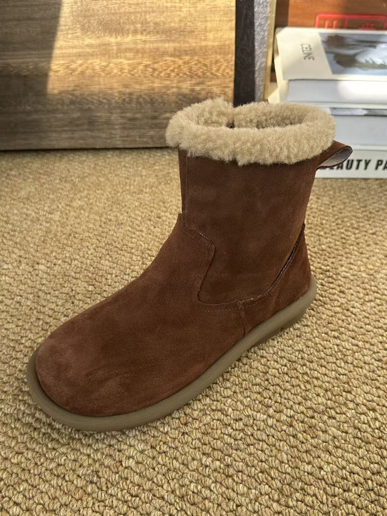 加绒保暖小暖炉!2025雪地靴反绒牛皮侧拉链休闲韩版棉靴女款!