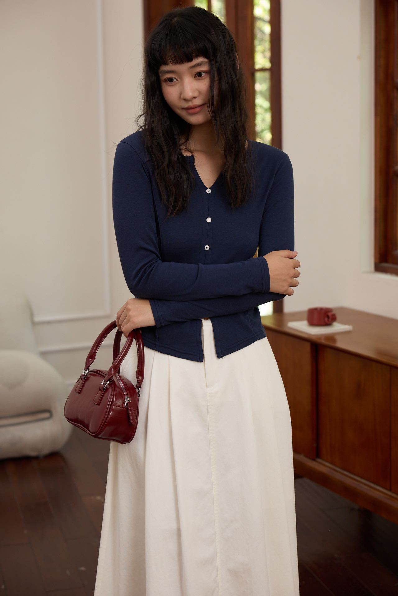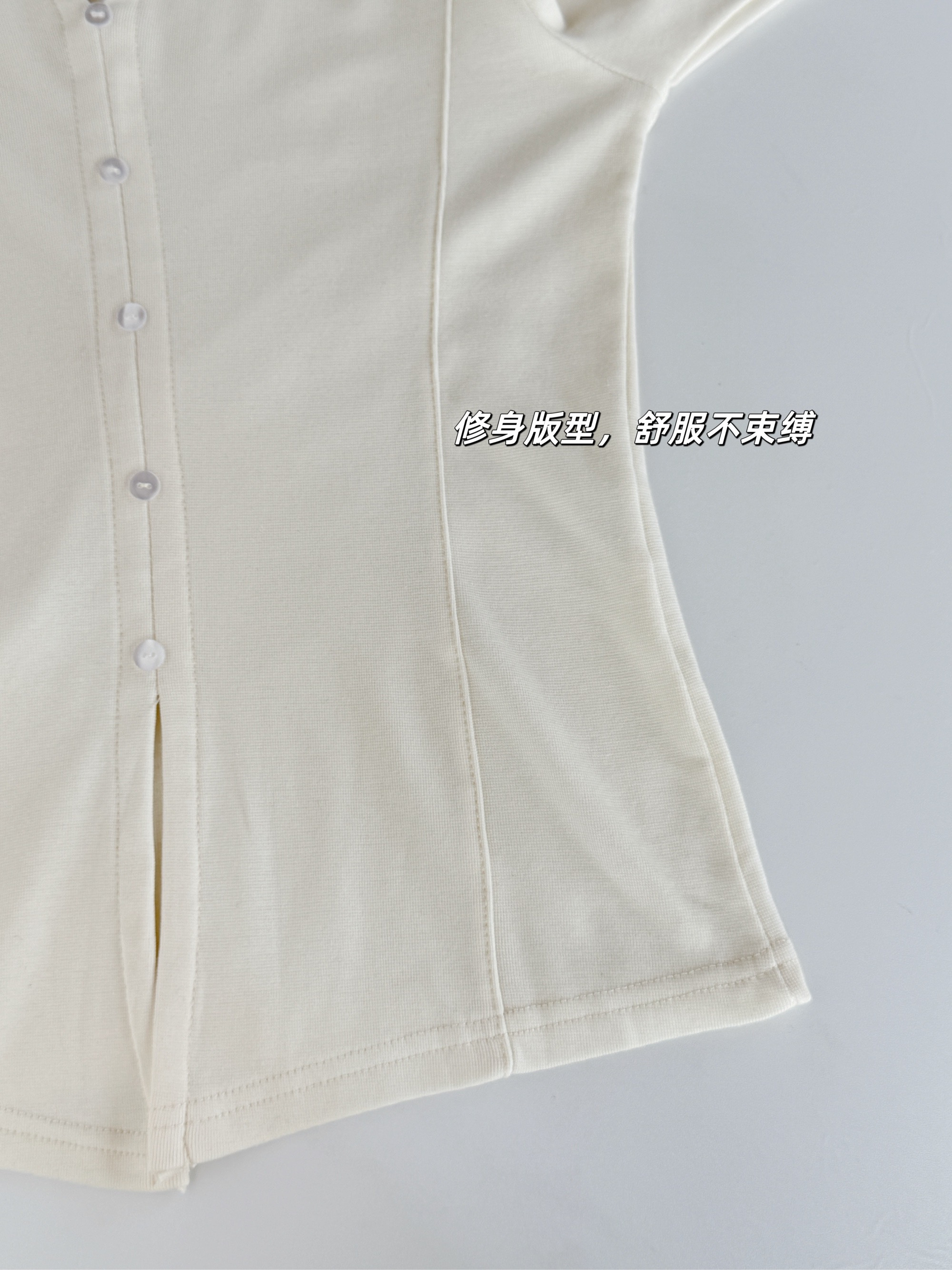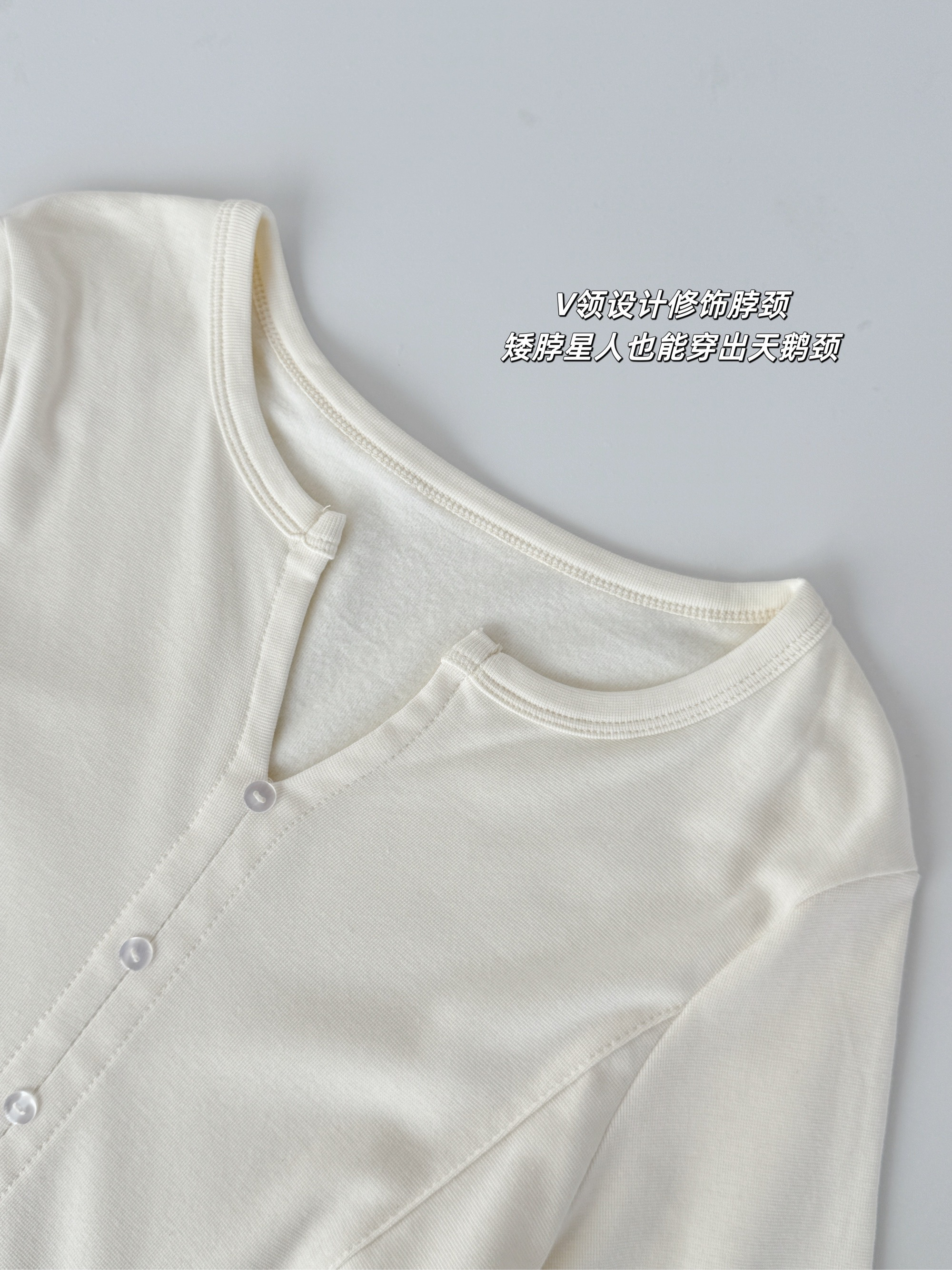 【修身V领显瘦假开衫】V领设计不挑脸型,修饰颈部线条超显瘦,门襟搭配定染的纽扣,高级私服设计