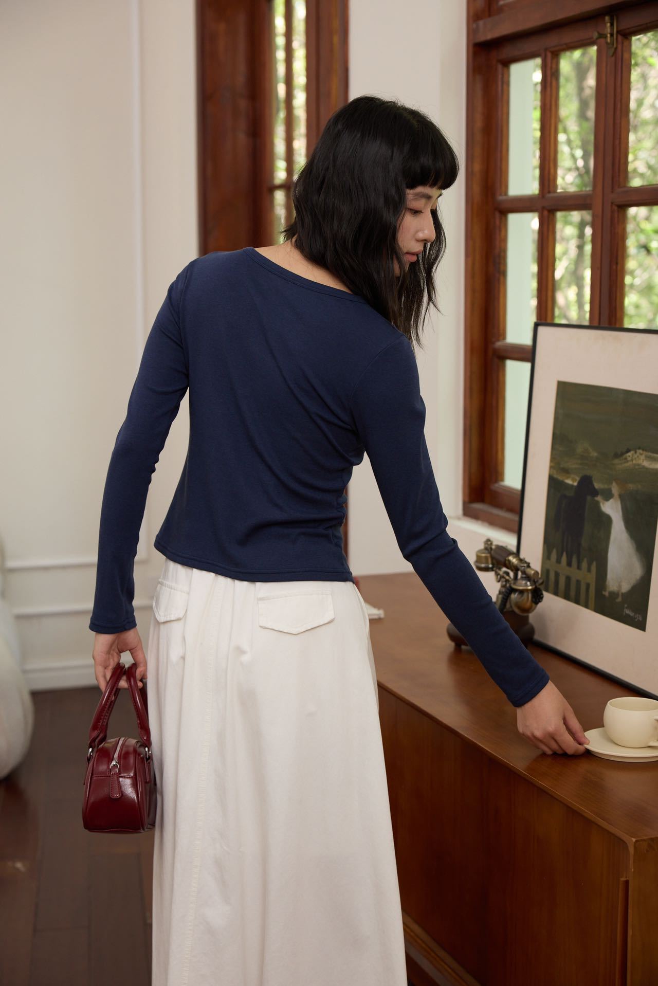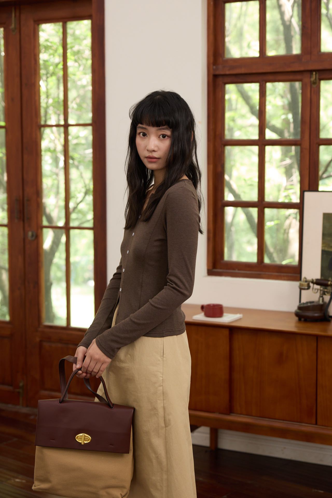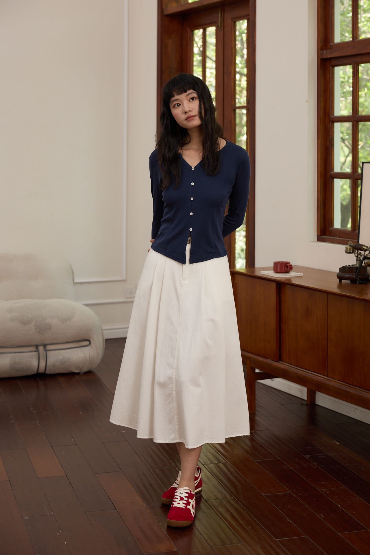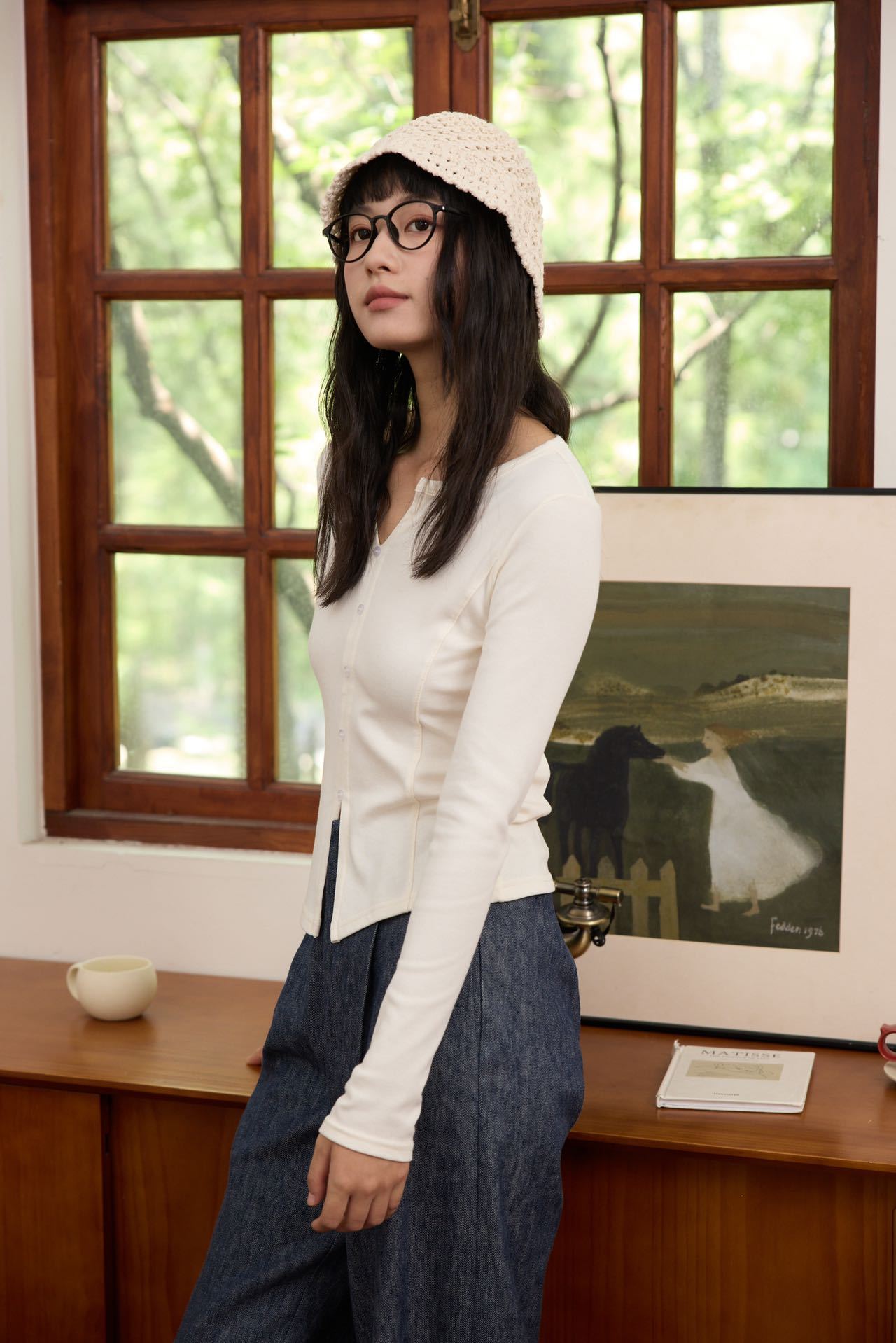 【修身V领显瘦假开衫】V领设计不挑脸型,修饰颈部线条超显瘦,门襟搭配定染的纽扣,高级私服设计