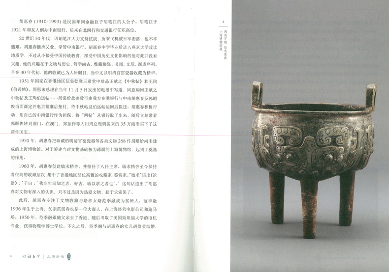 文博专家为你讲述文物背后的故事。本书在上海博物馆和新民晚报社共同主办的;上博讲坛基础上编辑而成。以上博研究馆员为代表的博物馆专家们,在四年时间里藉由;上博讲坛这个平台,和广大读者分享一流博物馆学者的学识与眼界,品类涉及陶瓷、青铜器、金石、考古、书画、钱币等领域。本书为;上博讲坛第一季的内容,十位专家从各自的领域;对话至宝,带领读者走近国宝文物,推广和普及中华绚烂文明。