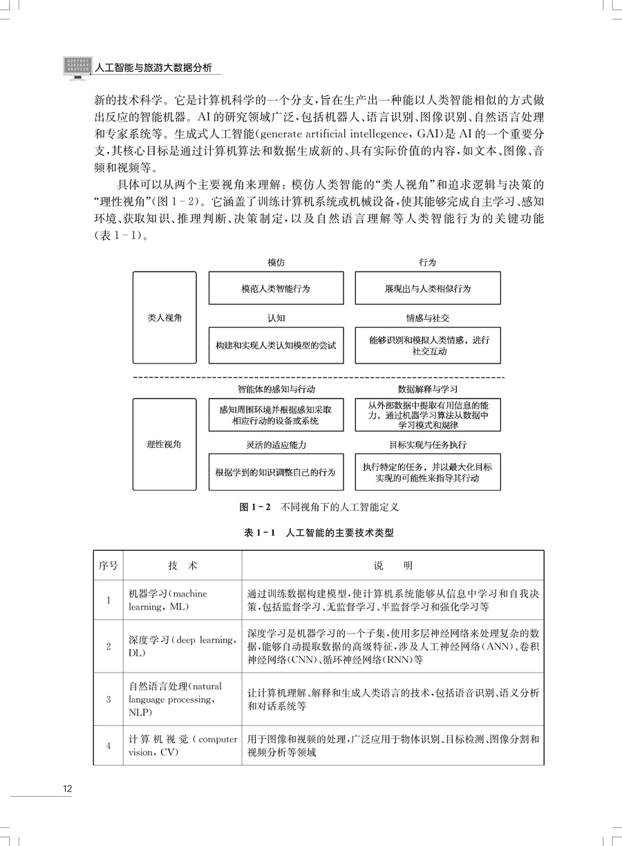 理论体系篇第一章 数字经济时代的人工智能与大数据3第一节 数字经济时代3第二节 人工智能和大数据的概念和理论框架11第二章 基于数字化的旅游大数据分析25第一节 数字文旅的特点与内在逻辑25第二节 旅游大数据分析的框架和流程30第三节 旅游大数据分析师职业技能38第三章 旅游AIGC41第一节 AIGC的背景、定义及技术简介41第二节 AIGC在旅游业的应用与挑战46第三节 AIGC应用的伦理、法规与社会影响49第四章 旅游大数据技术50第一节 旅游大数据管理50第二节 旅游大数据采集52第三节 旅游大数据分析54第四节 旅游大数据安全58第五章 旅游大数据可视化63第一节 旅游大数据可视化的基本介绍63第二节 旅游数据类型与可视化工具64第三节 旅游大数据可视化设计的表达66第六章 文化产业大数据场景应用81第一节 数字文化产业概述81第二节 数字文化产业应用场景实施方案83第三节 数字文博的典型案例85第七章 智慧景区AI与大数据场景应用89第一节 景区数字化的定义89第二节 景区数字化的实施方案90第三节 数字景区的典型案例98第八章 智慧酒店数字化场景应用101第一节 智慧酒店的概念101第二节 智慧酒店的实施方案102第三节 数字酒店的典型案例110第九章 旅行社与航空数字化场景应用112第一节 旅行社数字化场景应用112第二节 航空数字化场景应用119第十章 会展AI与大数据场景应用124第一节 智慧会展概述124第二节 会展数字化应用场景126实验实践篇实验实践项目一 文旅明信片AI设计143实验实践项目二 使用AIGC进行度假村酒店品牌形象的设计156实验实践项目三 重点景区区域热力分析173实验实践项目四 酒店服务顾客满意度分析191参考文献209