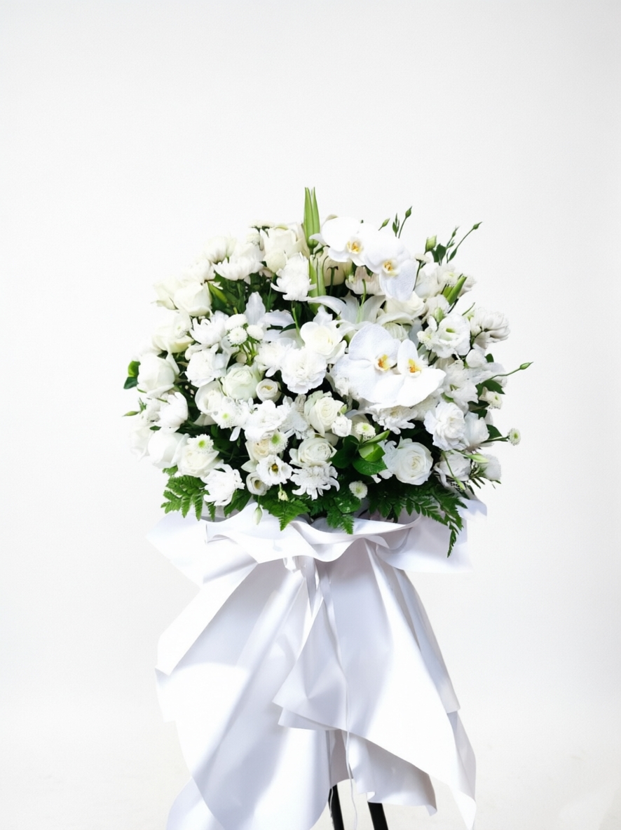 饱满的圆形花柱,是哀悼花艺中最具仪式感的形态之一。