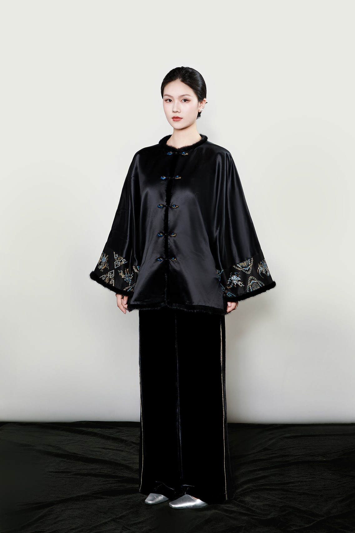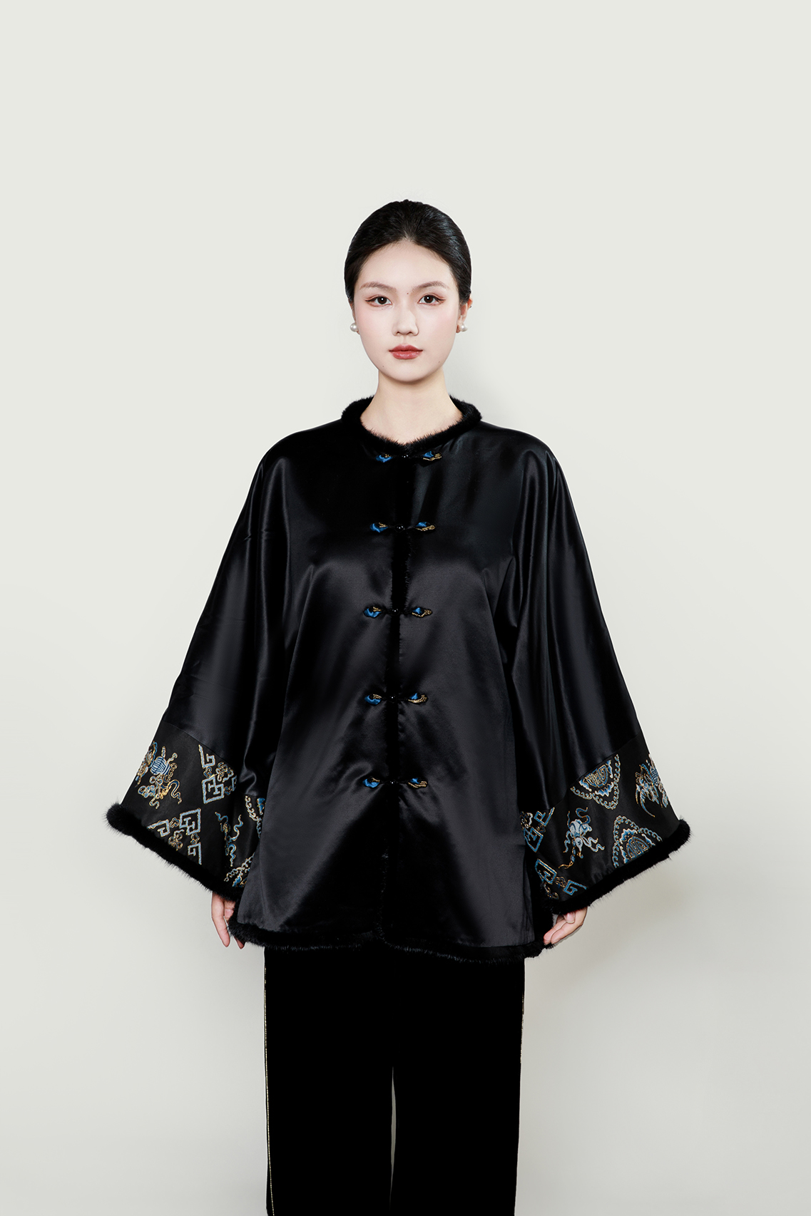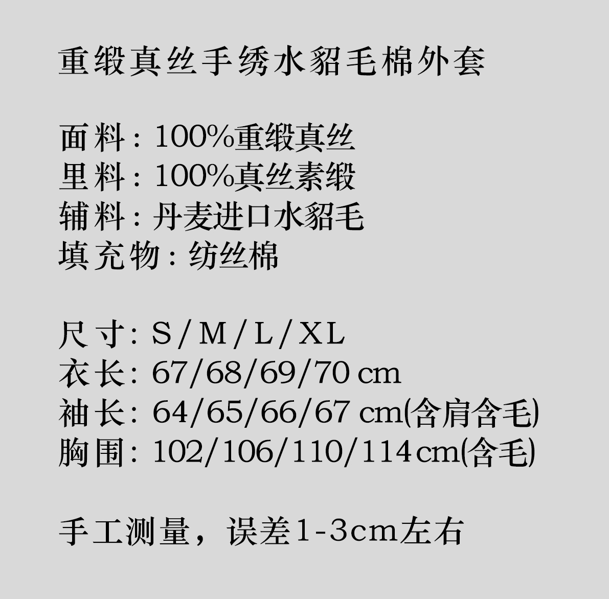 盛唐牡丹盛奢系列| 重缎真丝手绣水貂毛棉外套