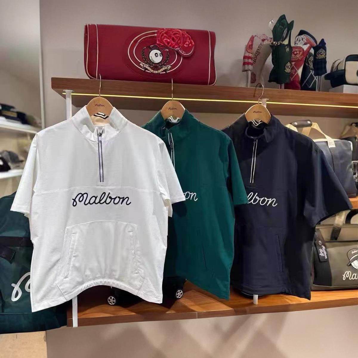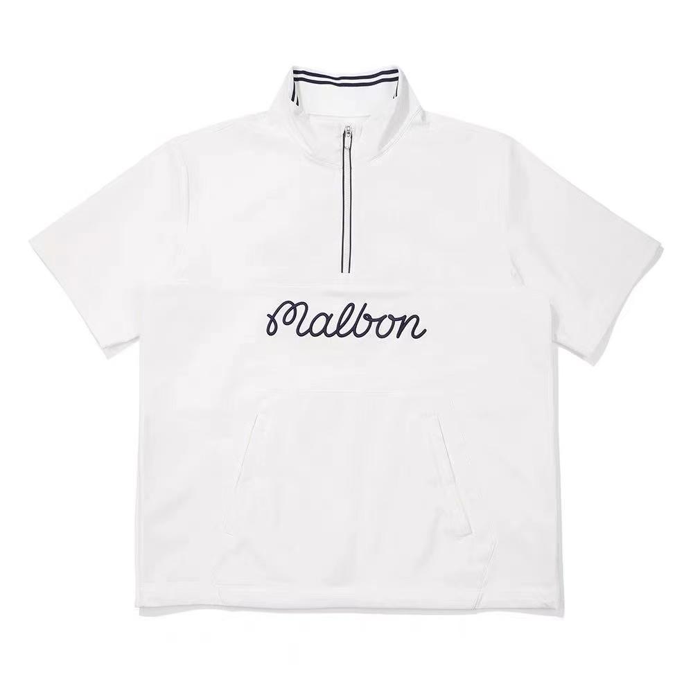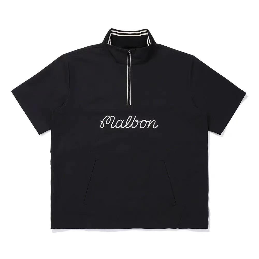 malbon 小精灵半拉链立领 套头 刺绣标短袖休闲潮流帅气