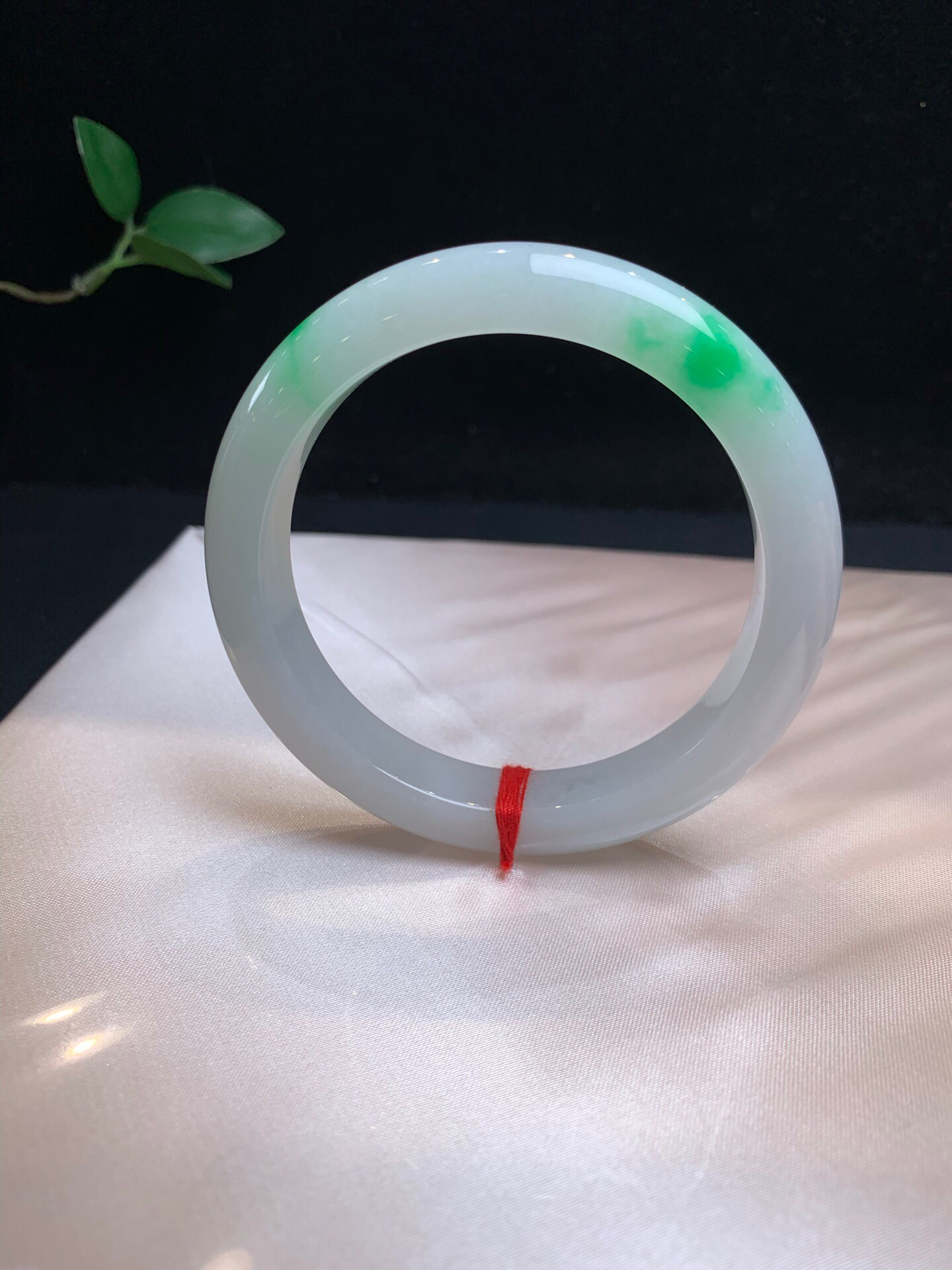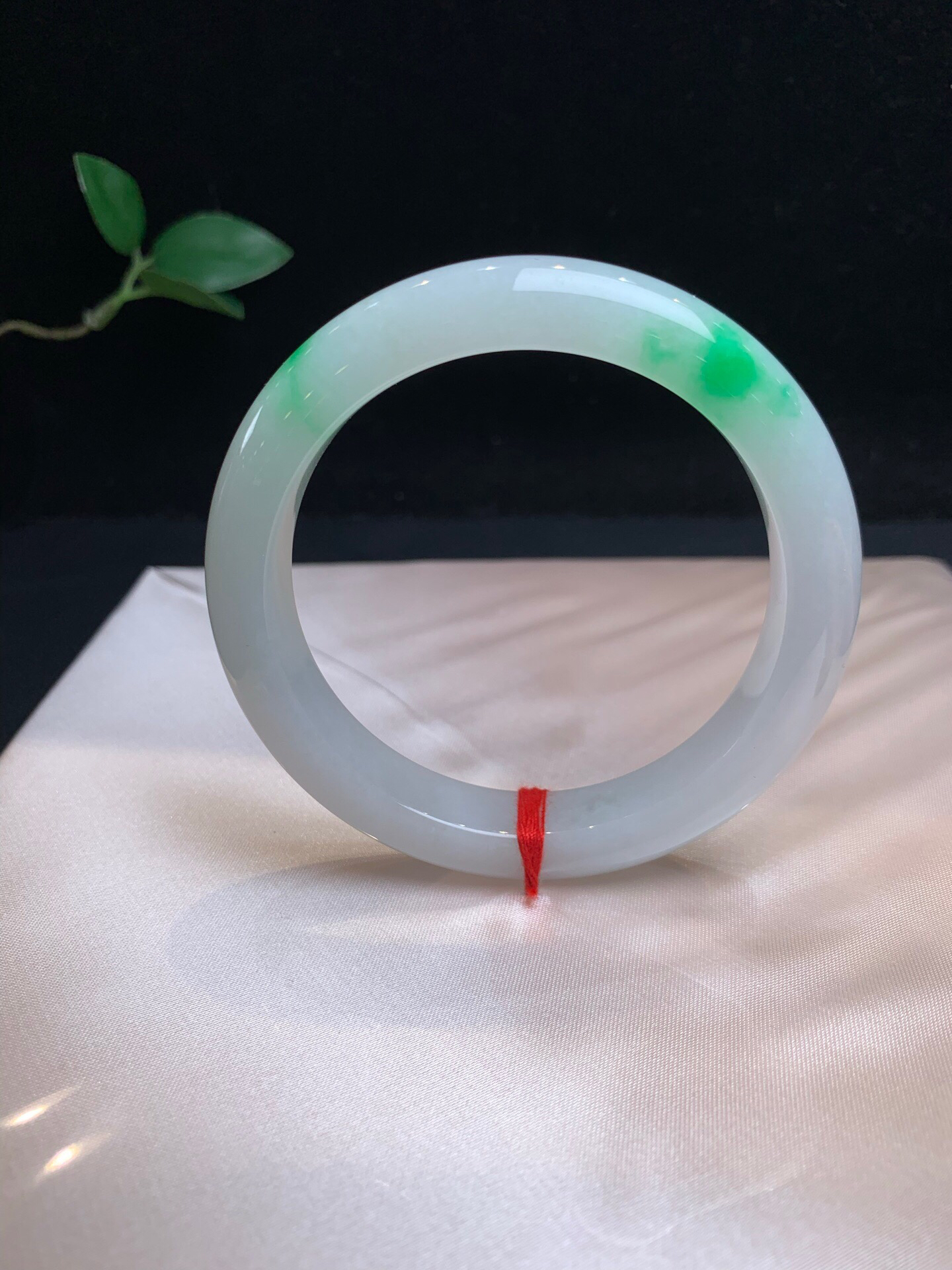 612755,60.5飘阳绿正圈手镯,12-10mm,非常清新秀气,底妆很均匀,二处飘阳绿色,干净完美。超值价💰64500 #优石客珠宝#香玉荟萃