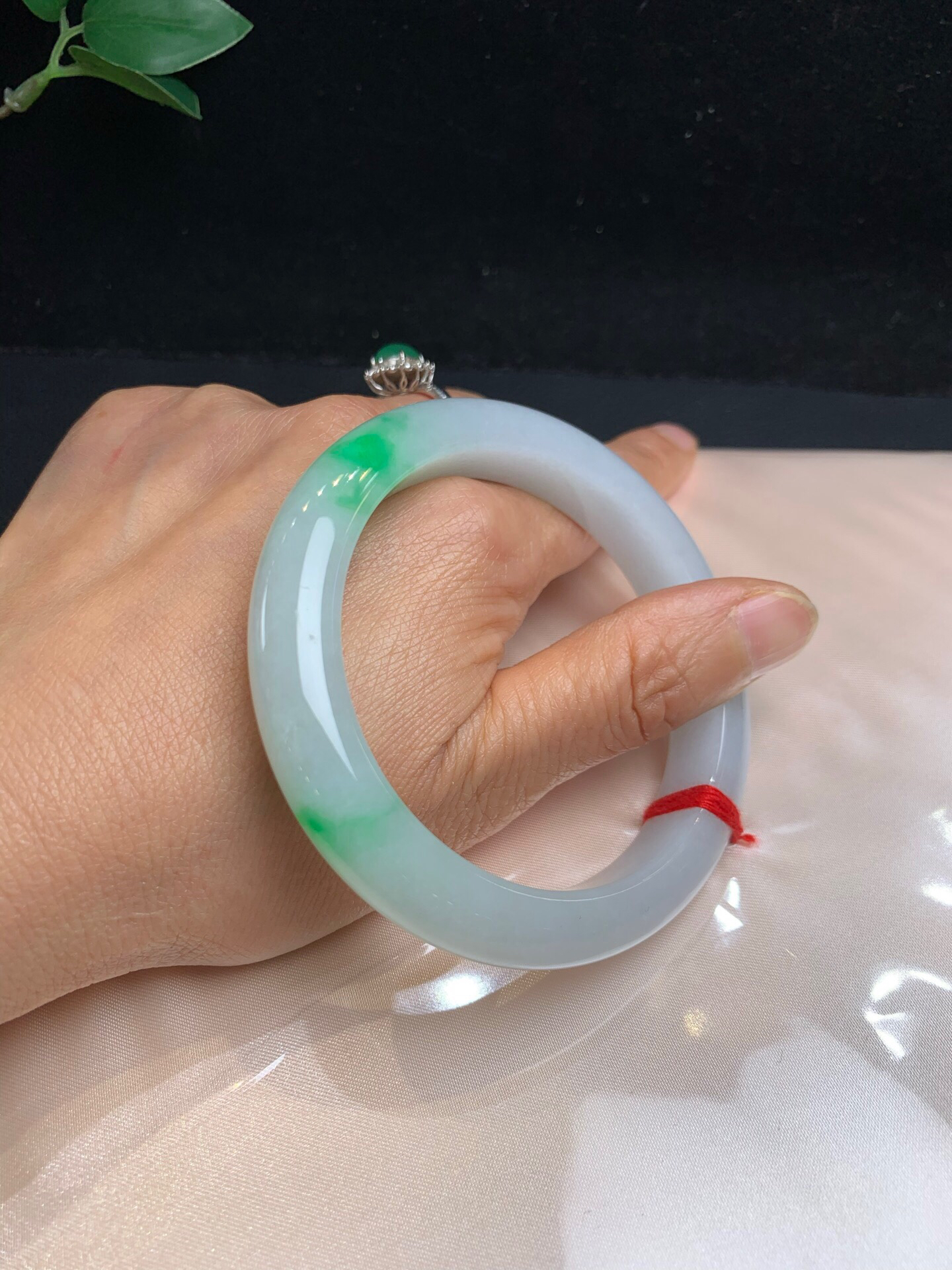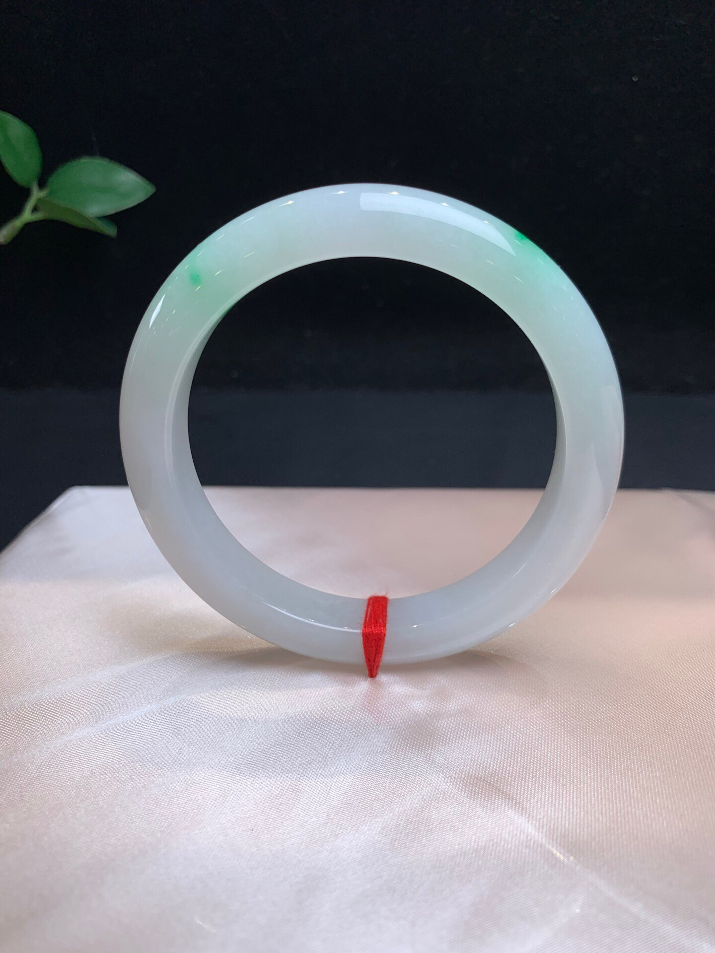 612755,60.5飘阳绿正圈手镯,非常清新秀气,底妆很均匀,二处飘阳绿色