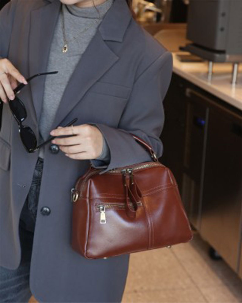 【预售3天】2025新款双拉链大容量手提小方包通勤百搭单肩斜挎包女包YM3057