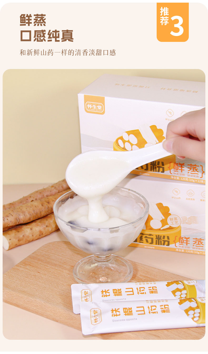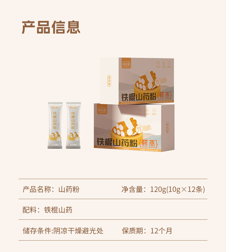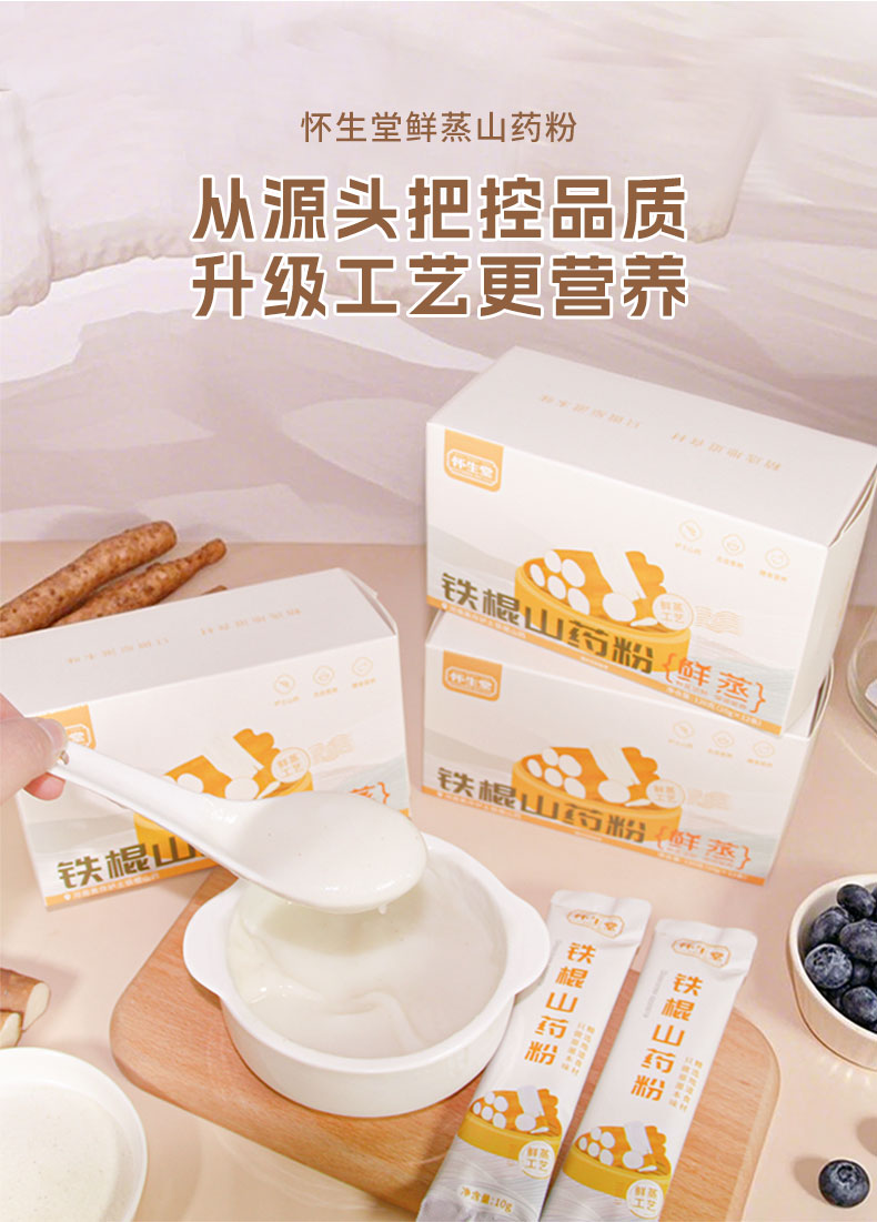 【怀生堂】鲜蒸铁棍山药粉,甄选垆土山药,鲜蒸工艺升级,口感更好营养更升级!每盒120g(10g*12条)