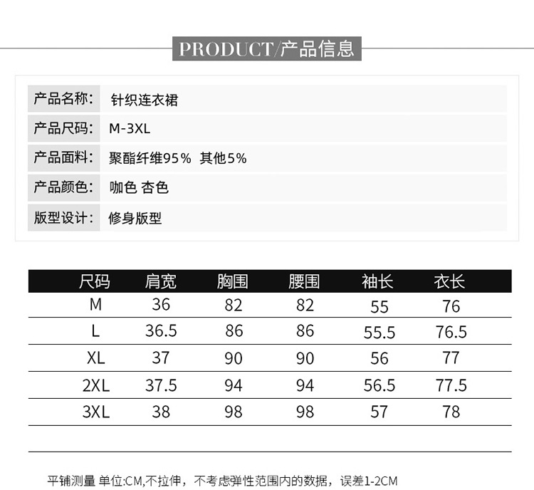 QYM 5CX8001-Y针织连衣裙厚款毛线裙包臀裙中长款裙 商品图1