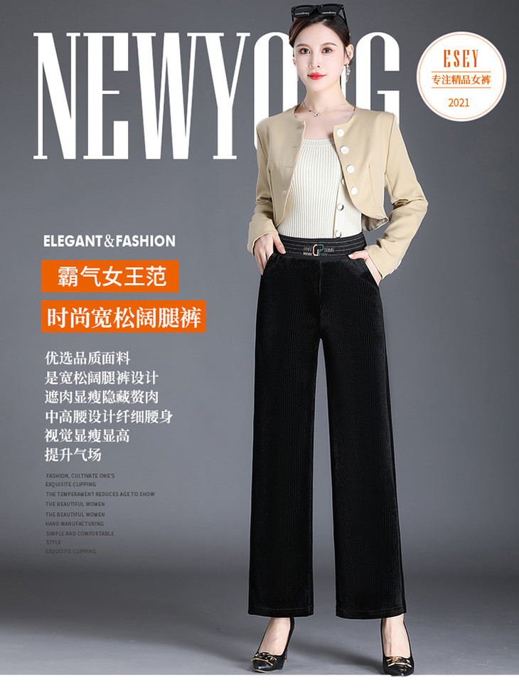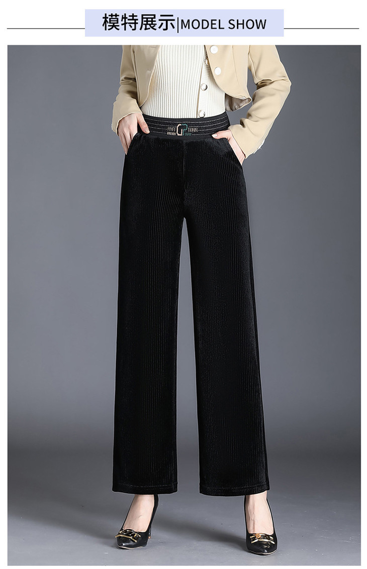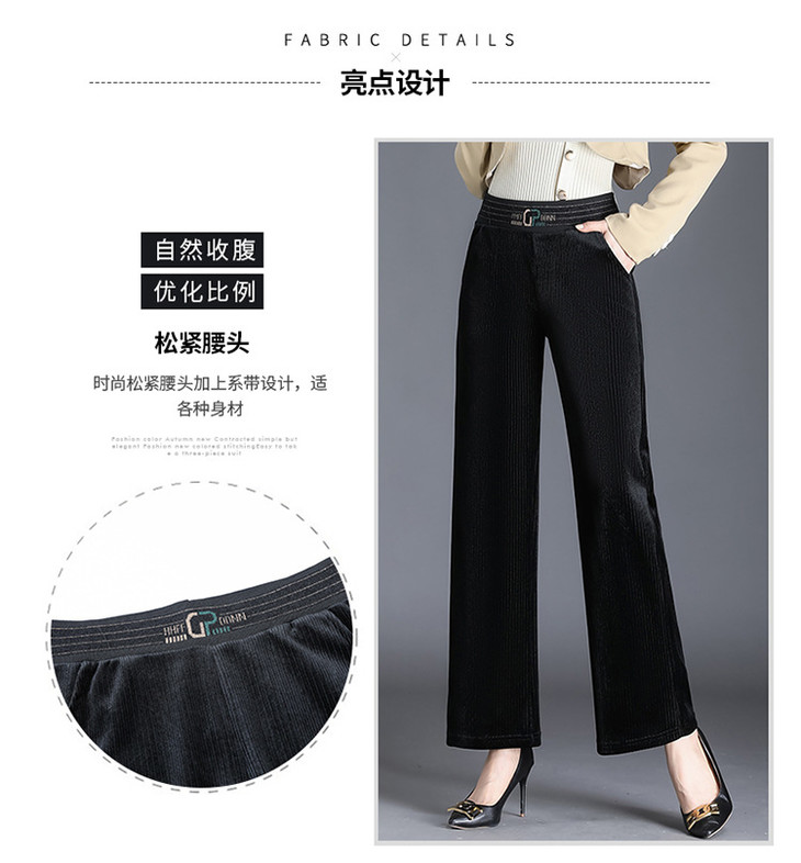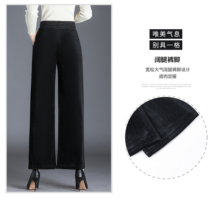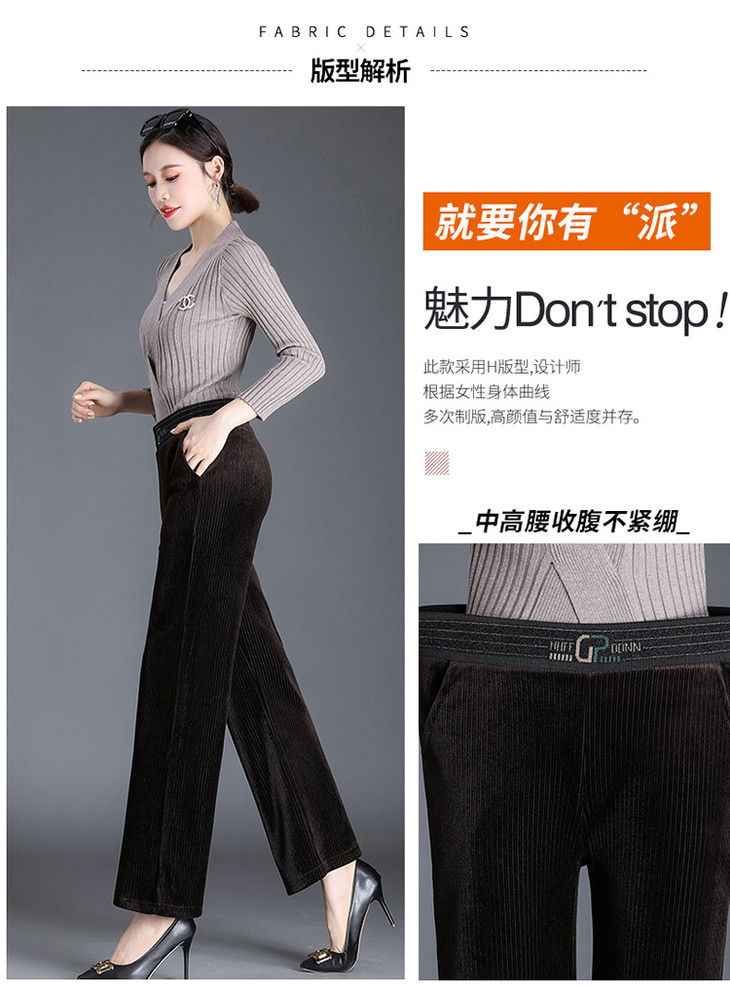 MQ1758-2127新款时尚气质松紧高腰直筒条绒阔腿裤