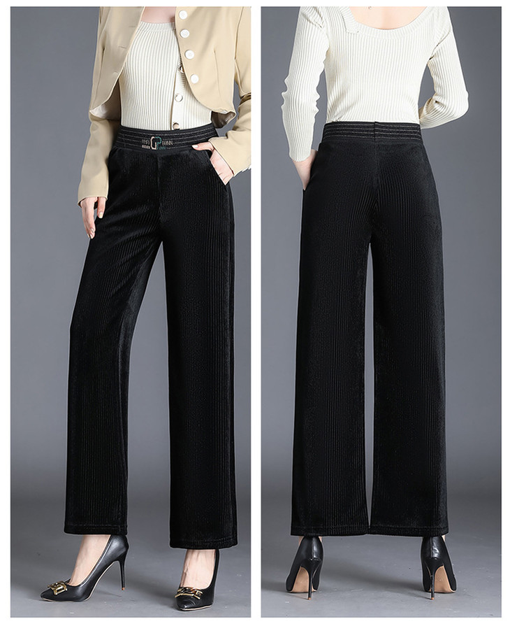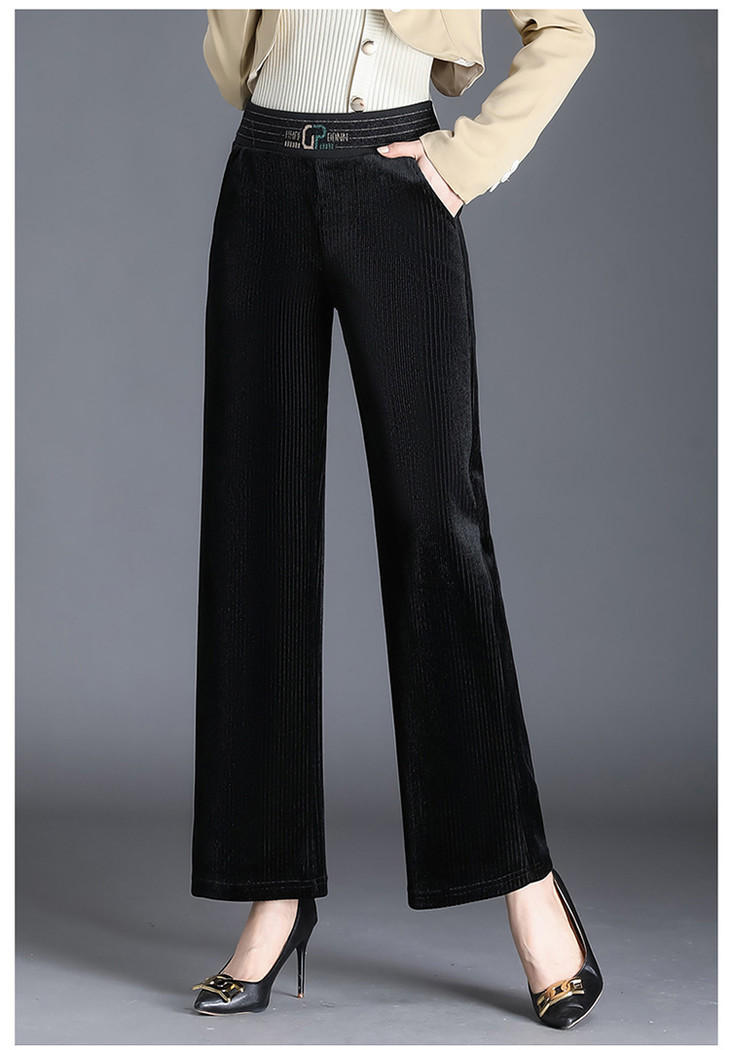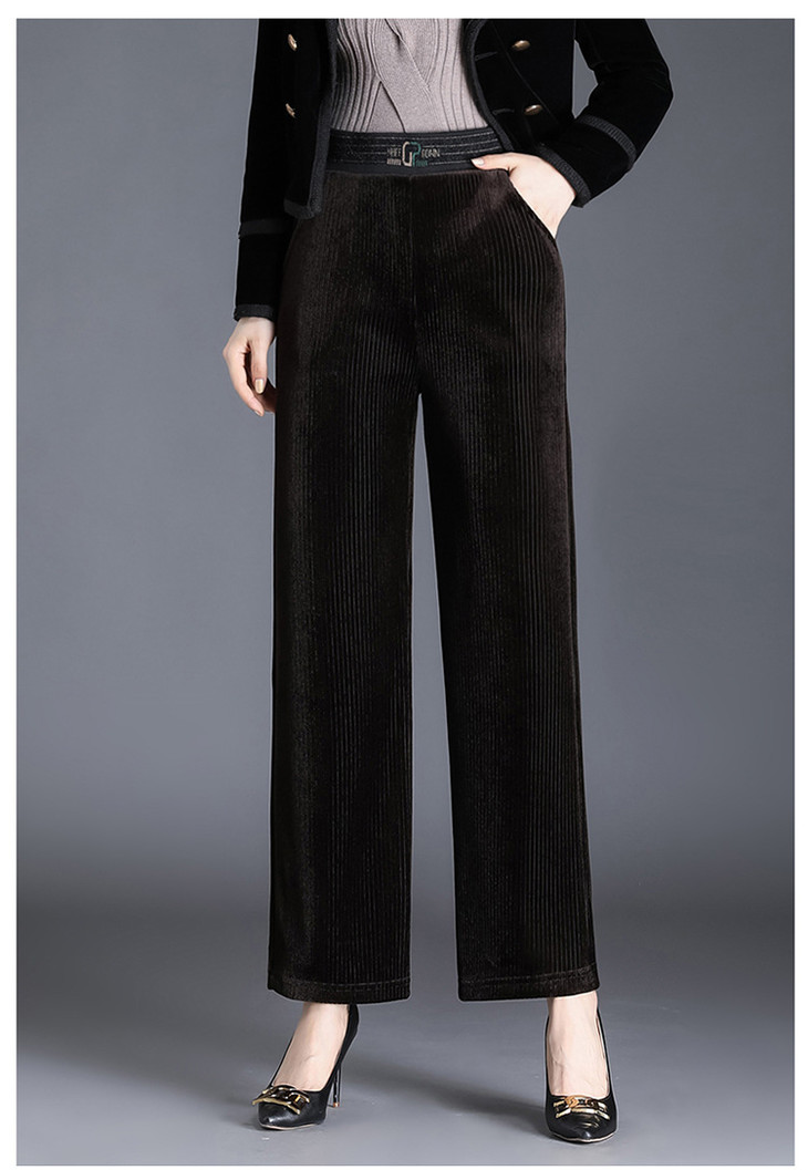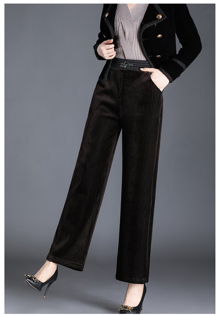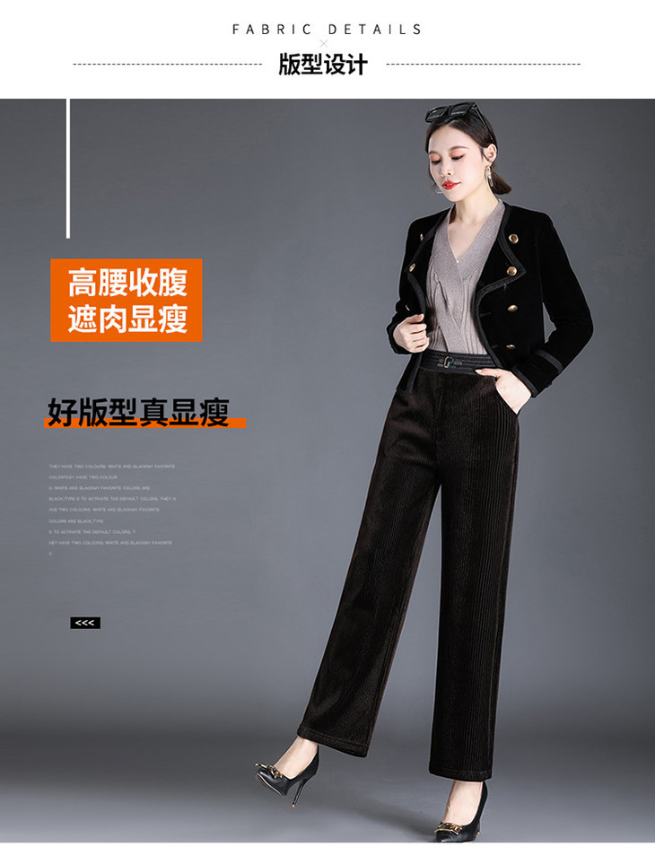 MQ1758-2127新款时尚气质松紧高腰直筒条绒阔腿裤