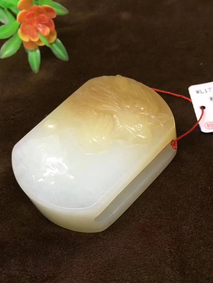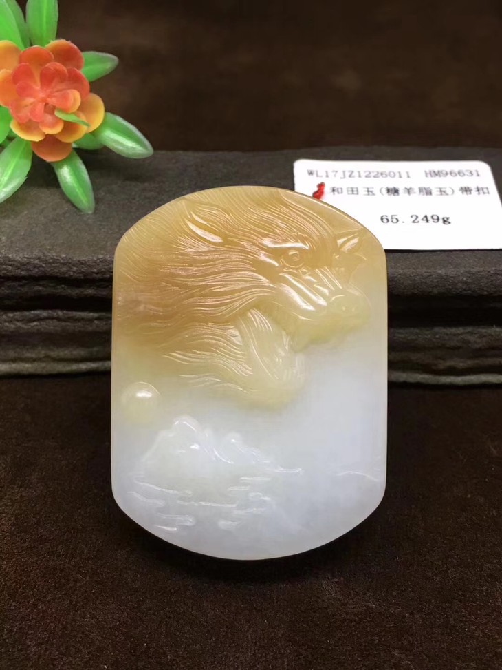 【狼图腾~皮带扣】玉质温润细腻,油润度佳,牌面俏色雕刻狼头,呼啸山林,霸气威严,王者风范,狼代表力量与团结,智慧与勇气。寓意机智勇敢,勇往直前……