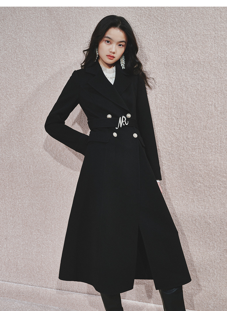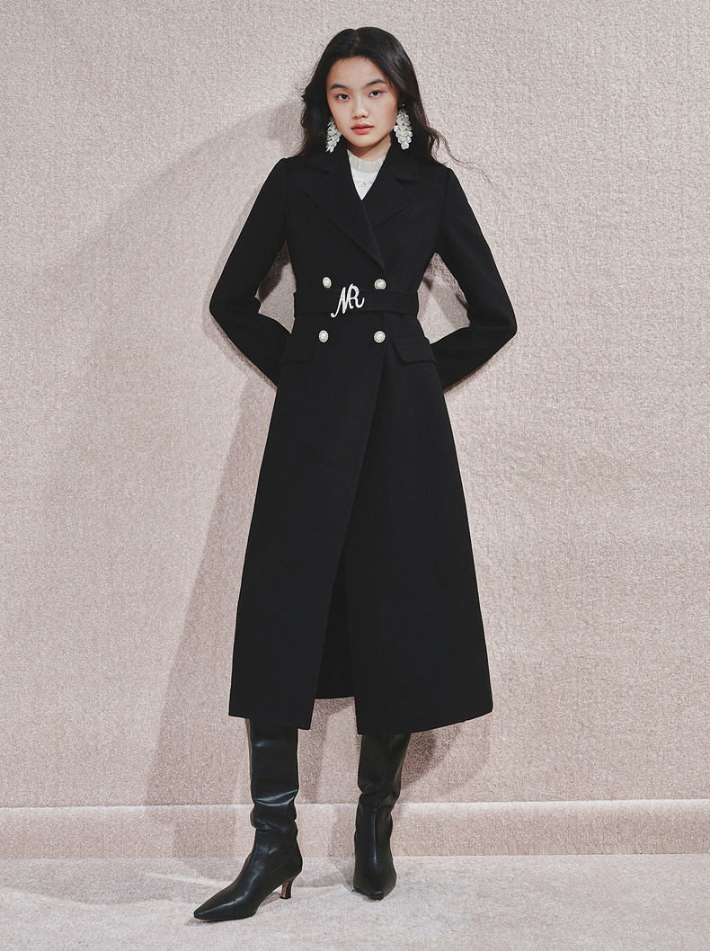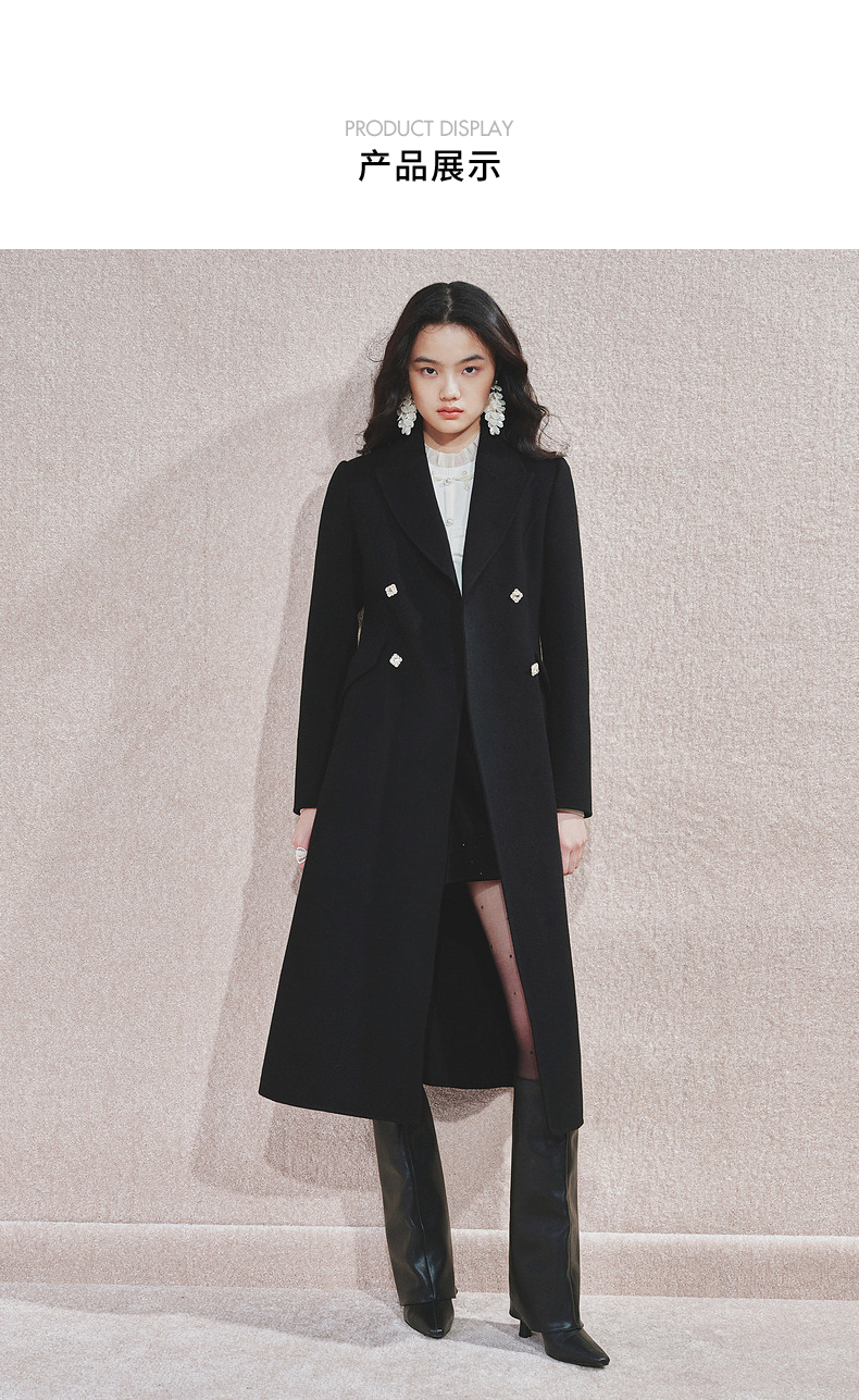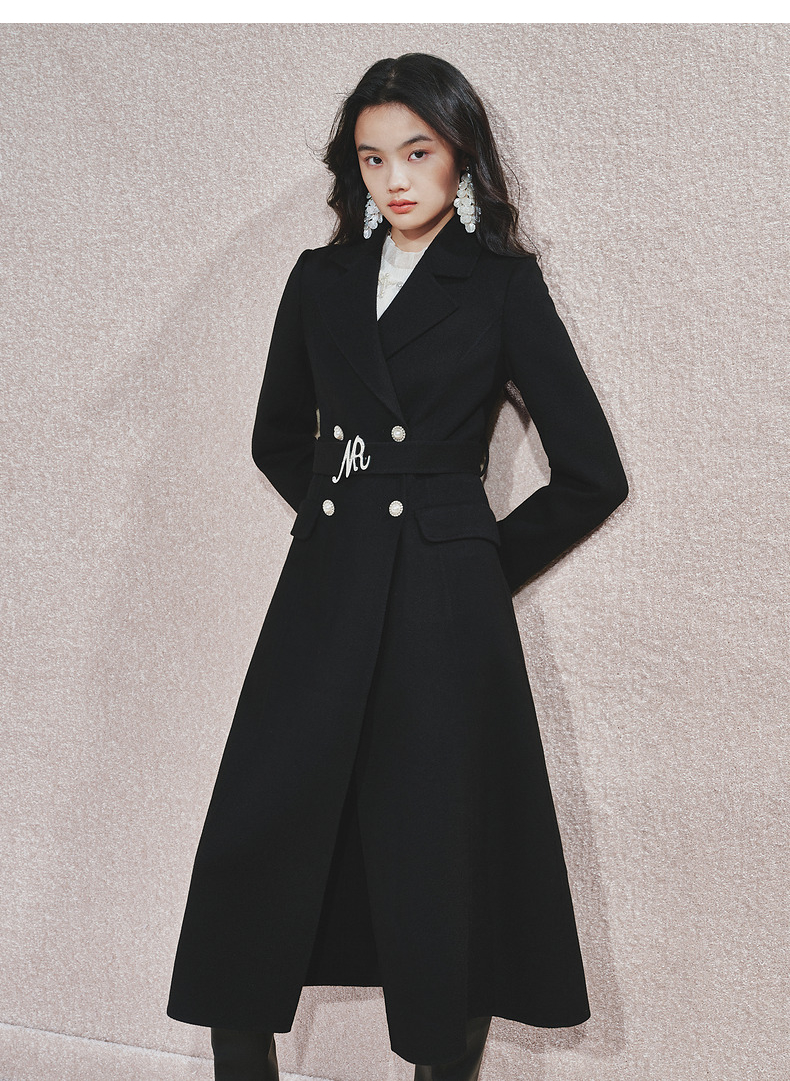 MAXRIENY优雅复古感大女24冬新款双面呢绵羊毛外套中长款收腰显瘦(货号:MS85CT760)