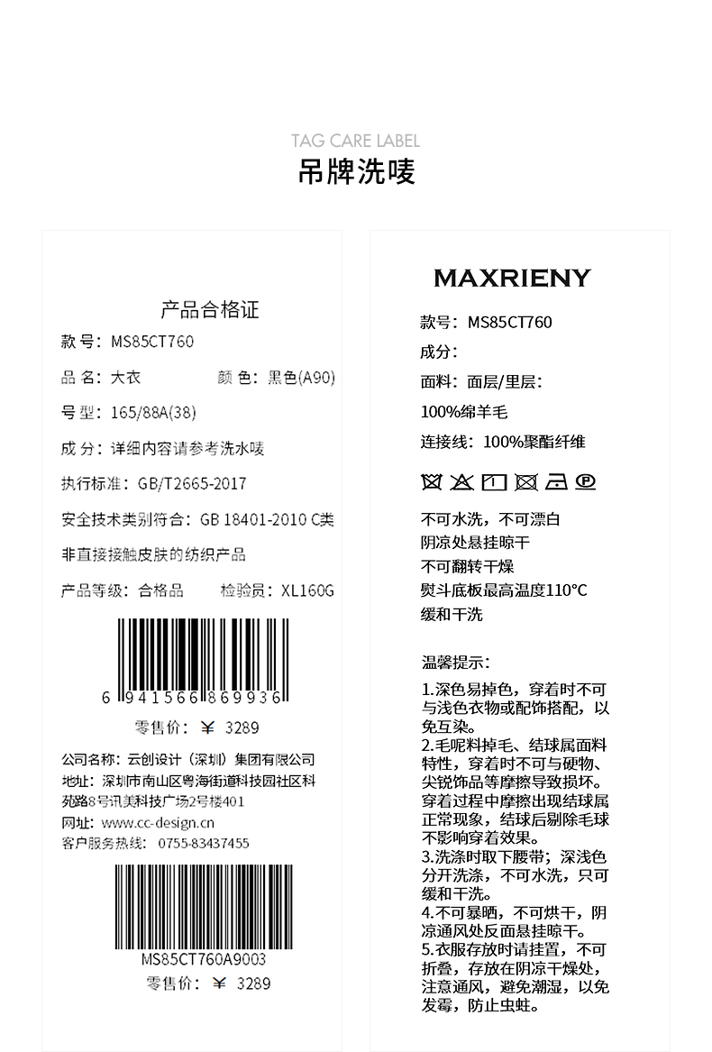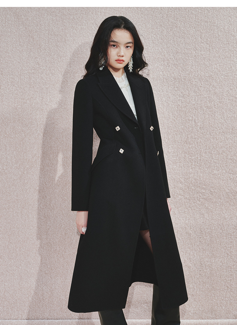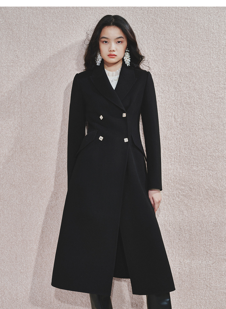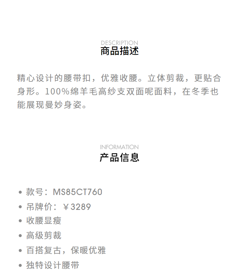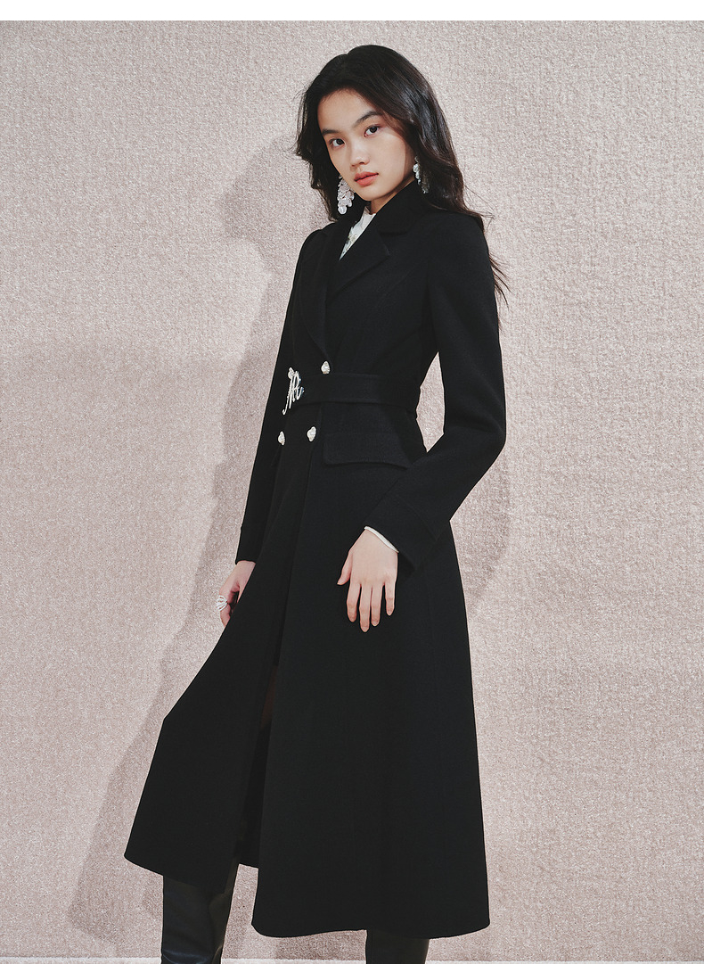 MAXRIENY优雅复古感大女24冬新款双面呢绵羊毛外套中长款收腰显瘦(货号:MS85CT760)