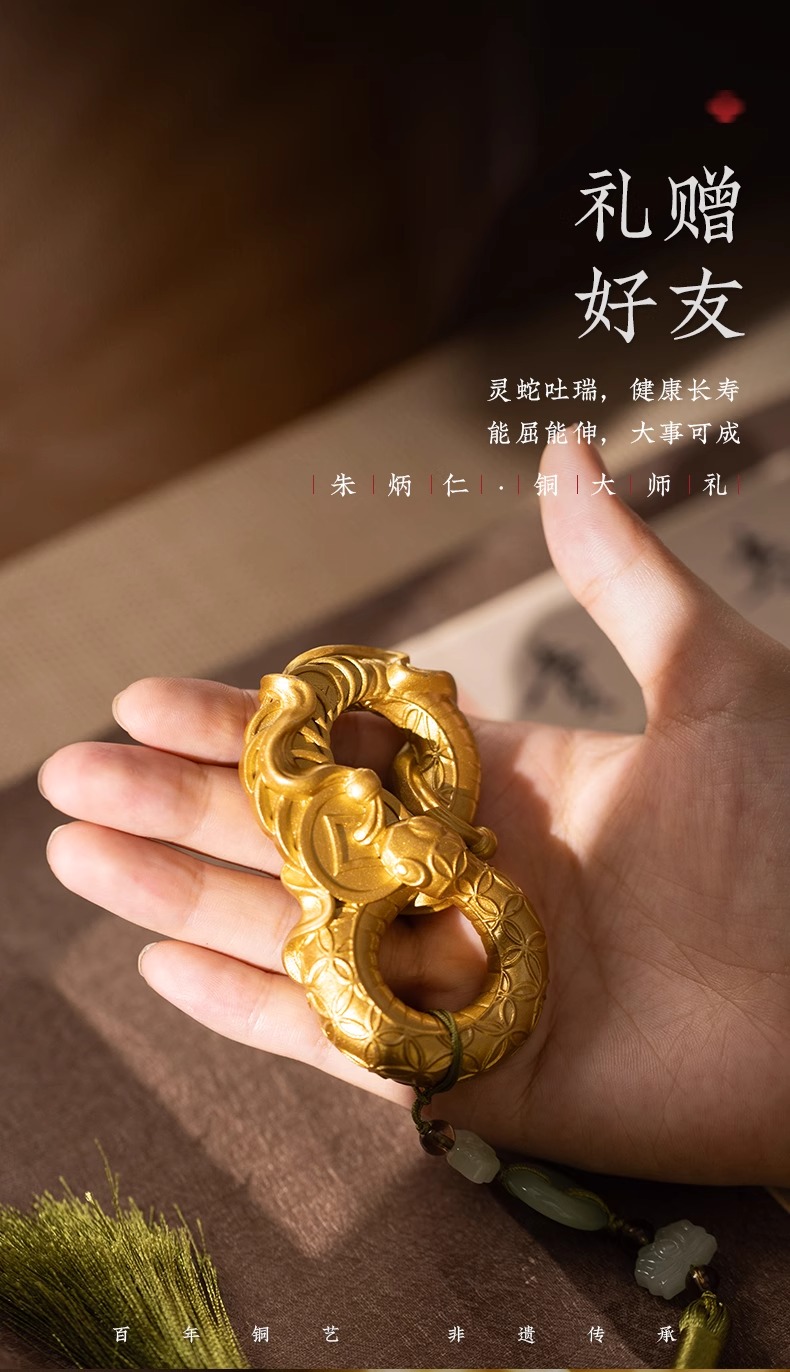朱炳仁铜 富贵无极手把件招财蛇生肖随手盘玩礼物