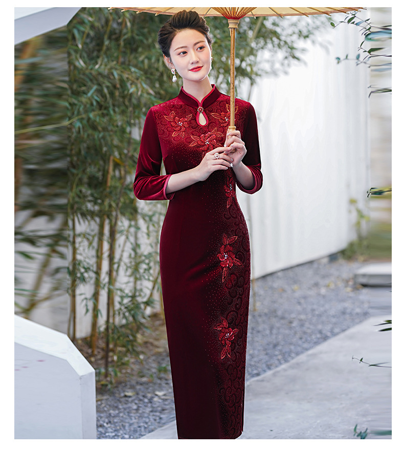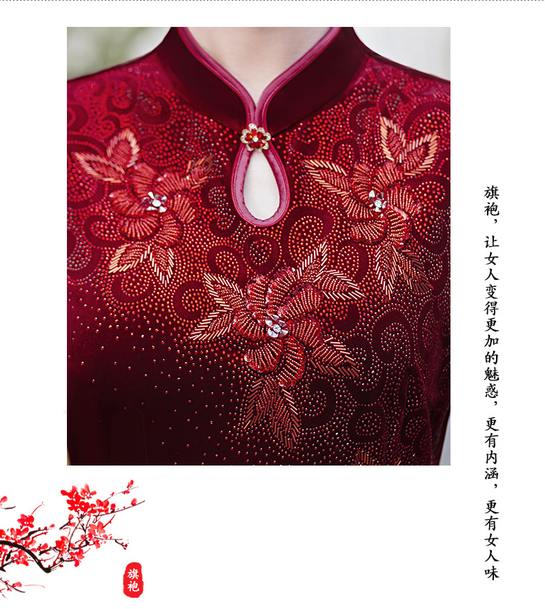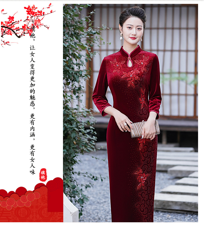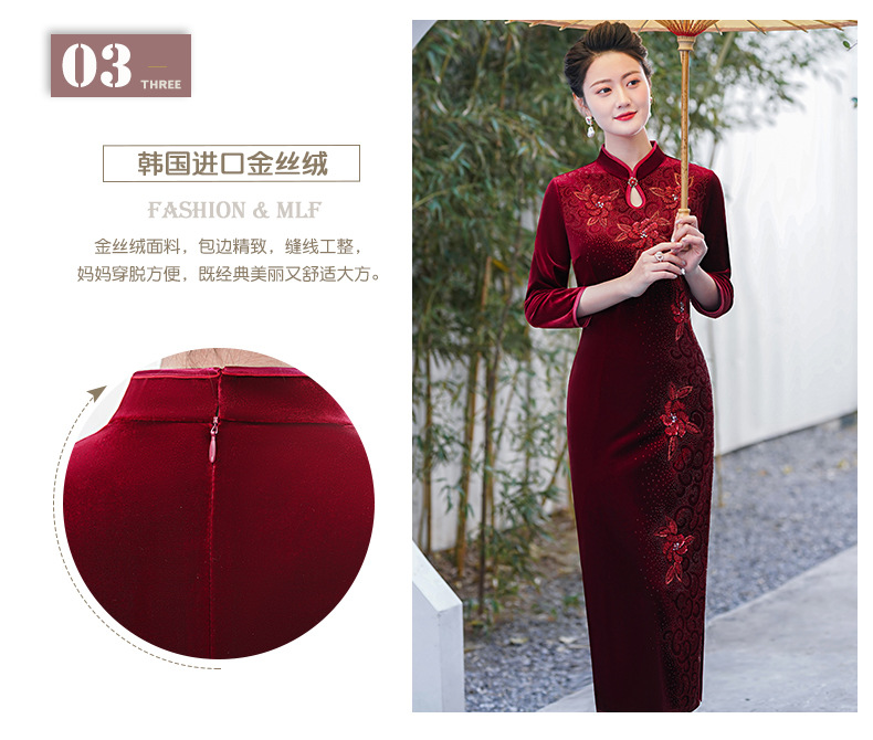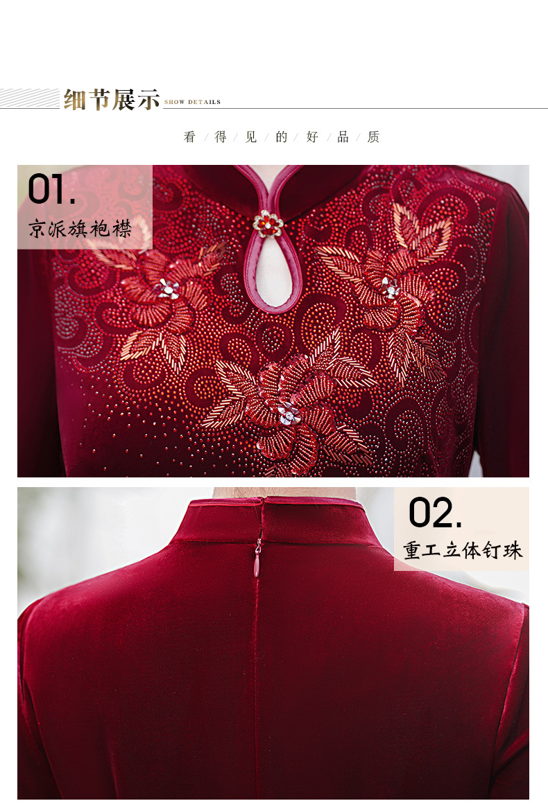 MLY旗袍金丝绒喜妈妈结婚复古中式立领大码