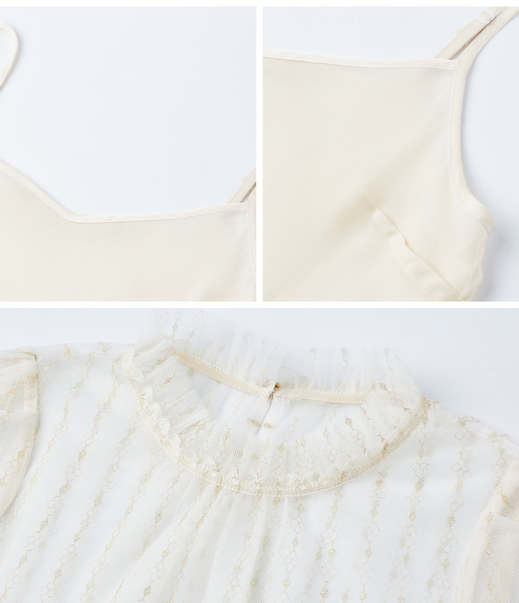金闪蕾丝网纱内搭雪纺衫打底早秋美拉德