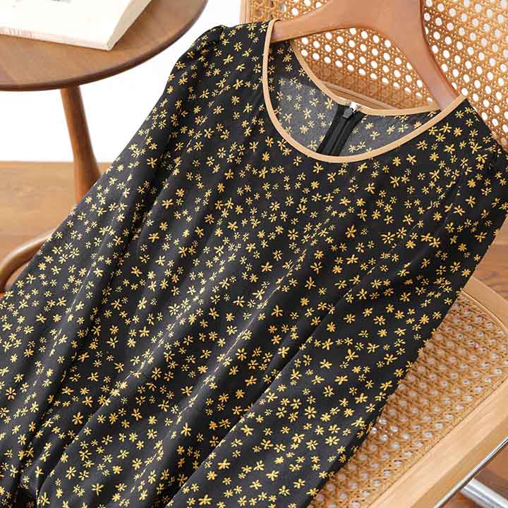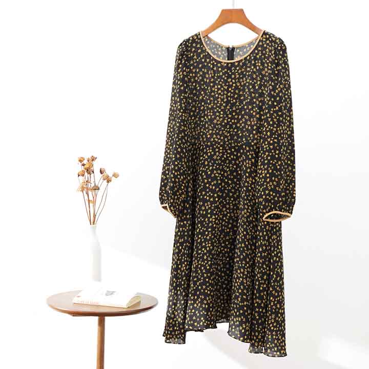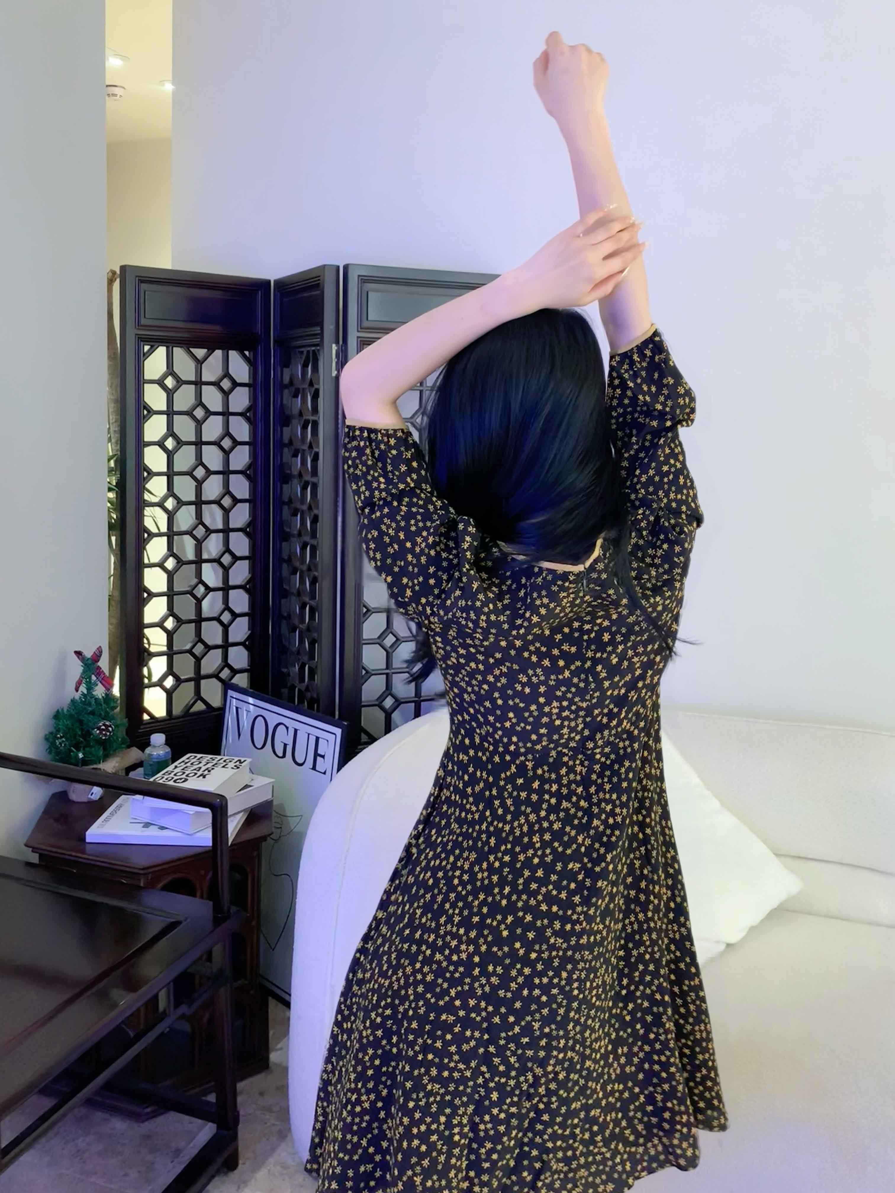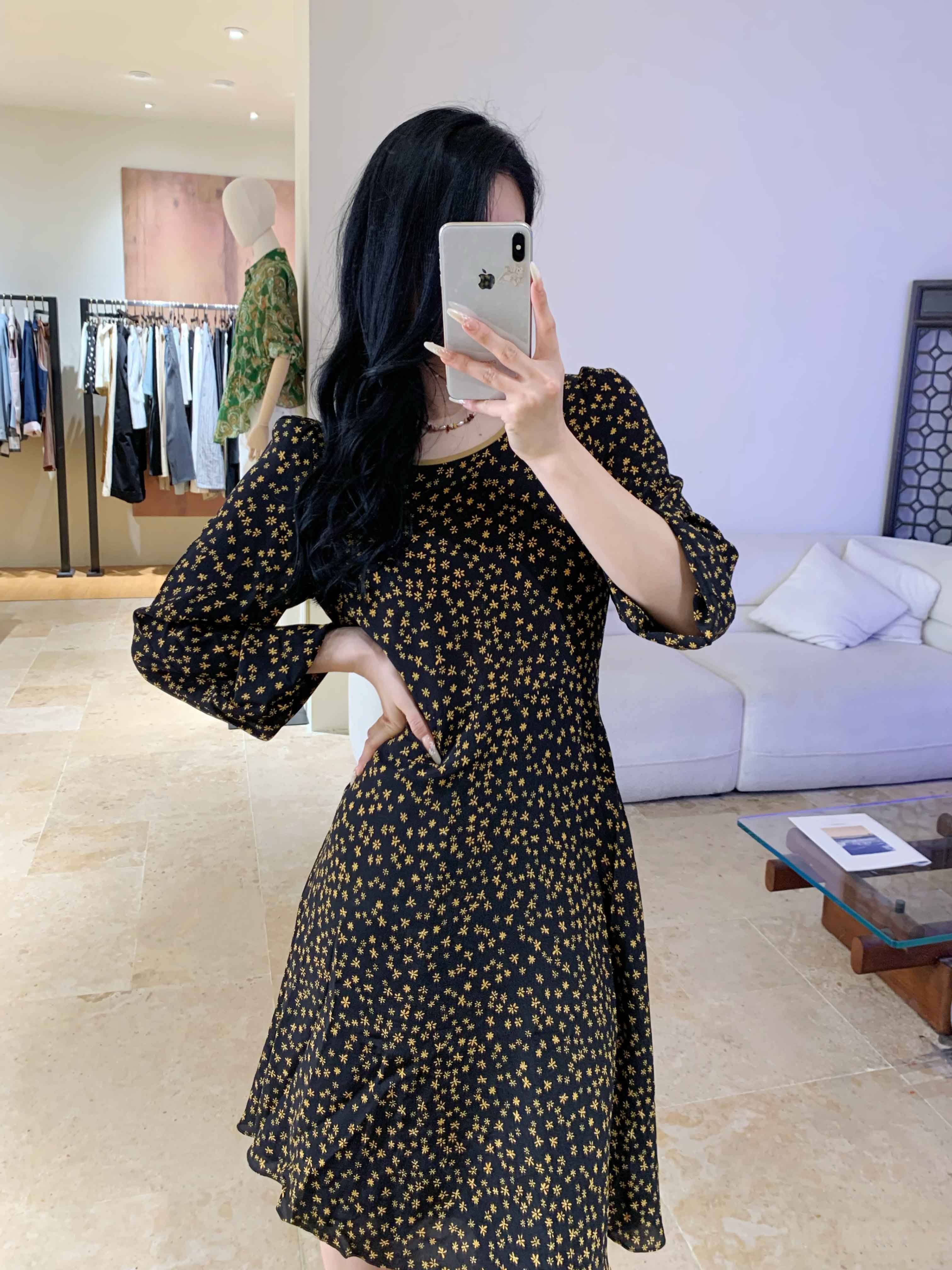 顺丰包邮洛诗琳73706春夏新款高级感法式气质真丝碎花连衣裙0561