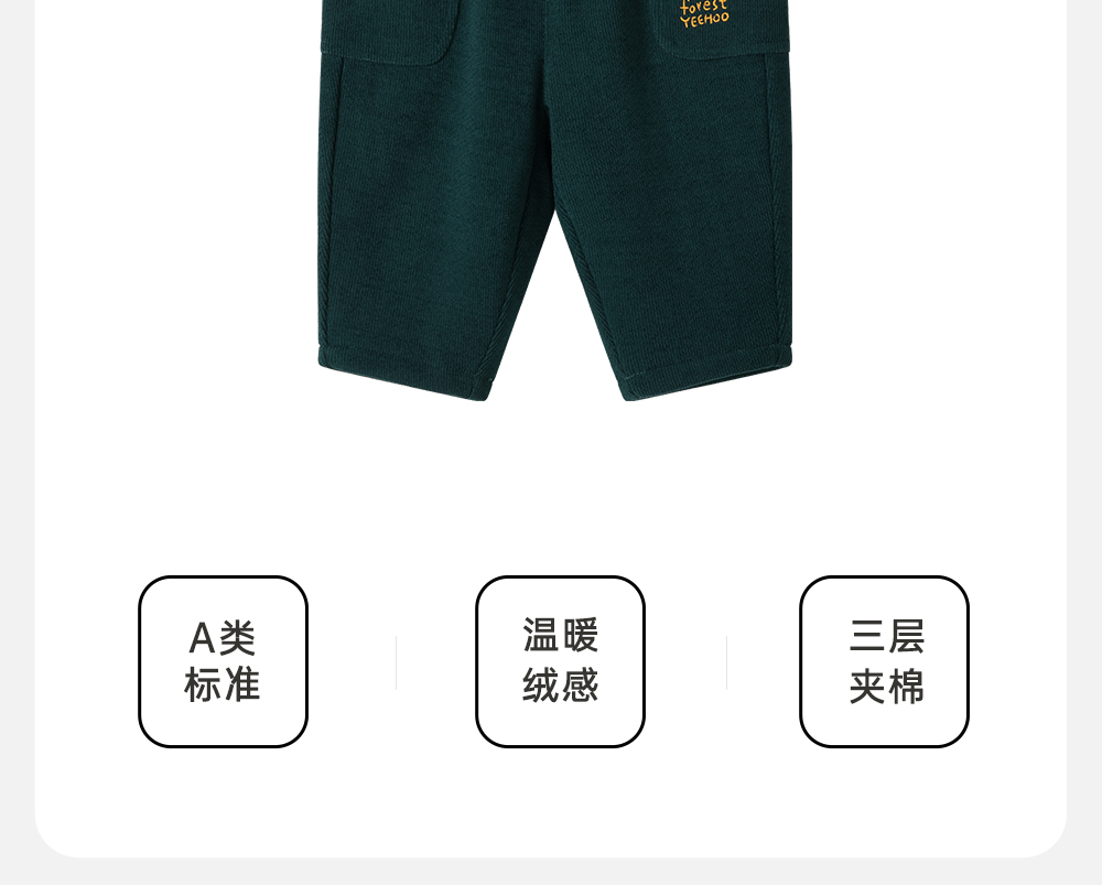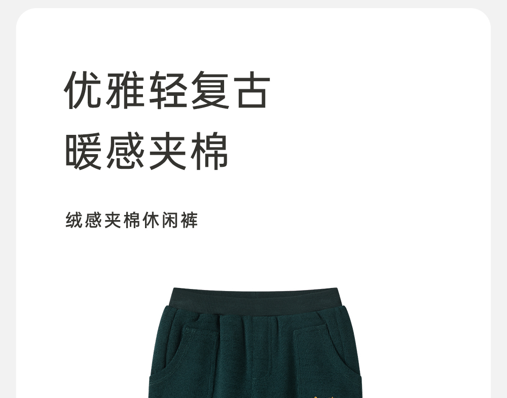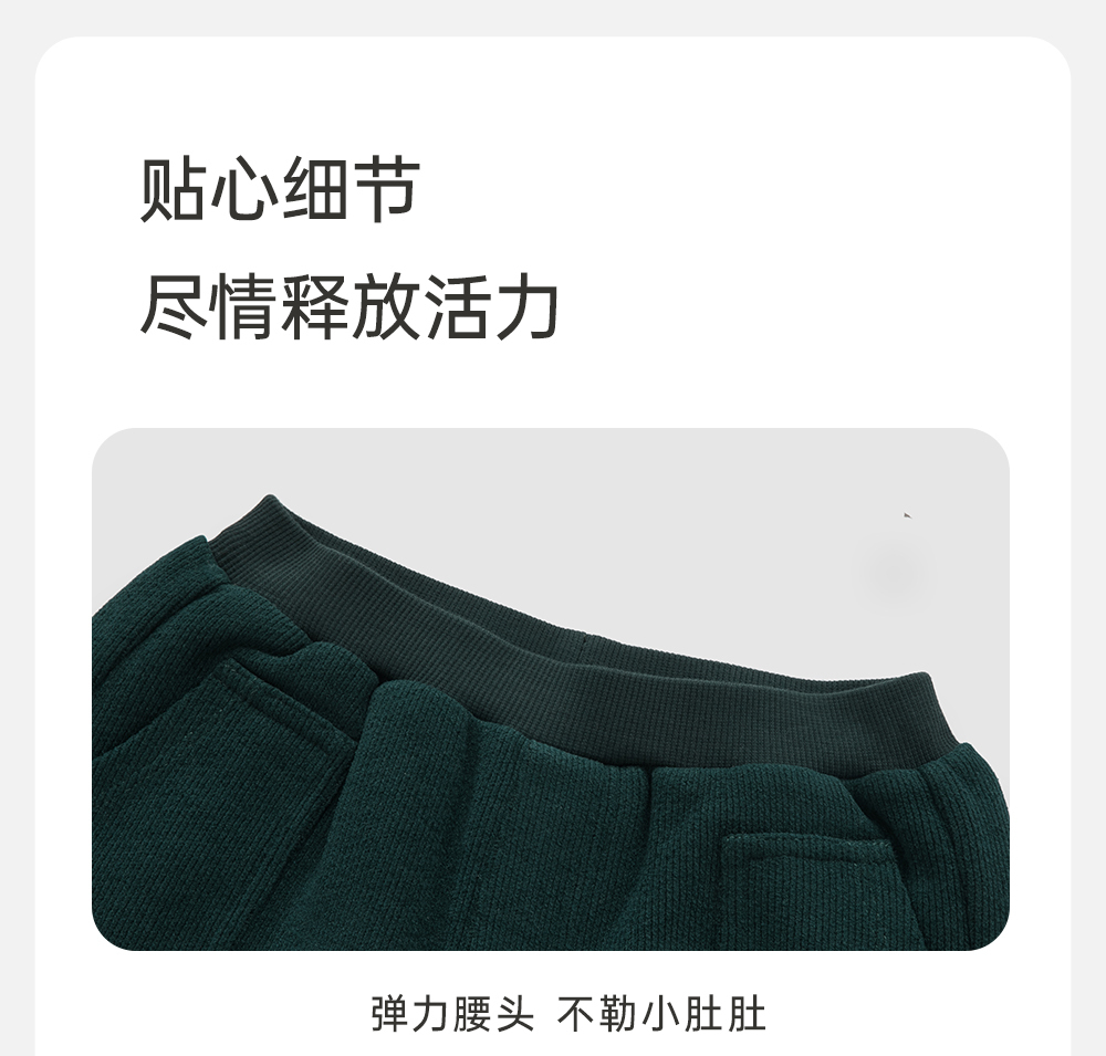 【商场同款】英氏儿童秋冬裤子男童夹棉灯芯绒休闲裤长裤
