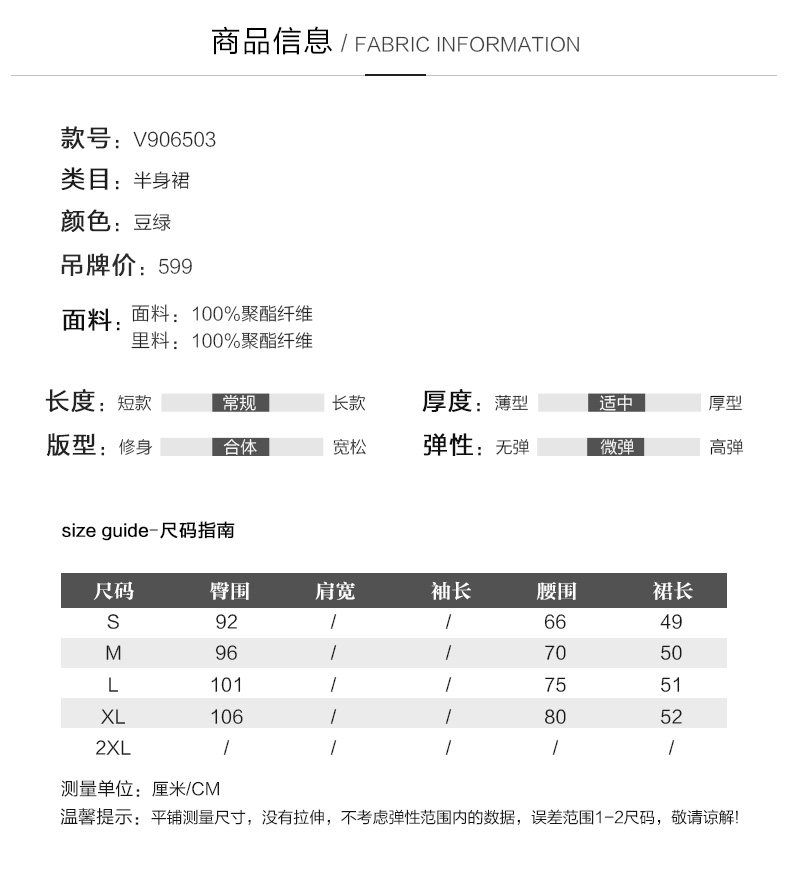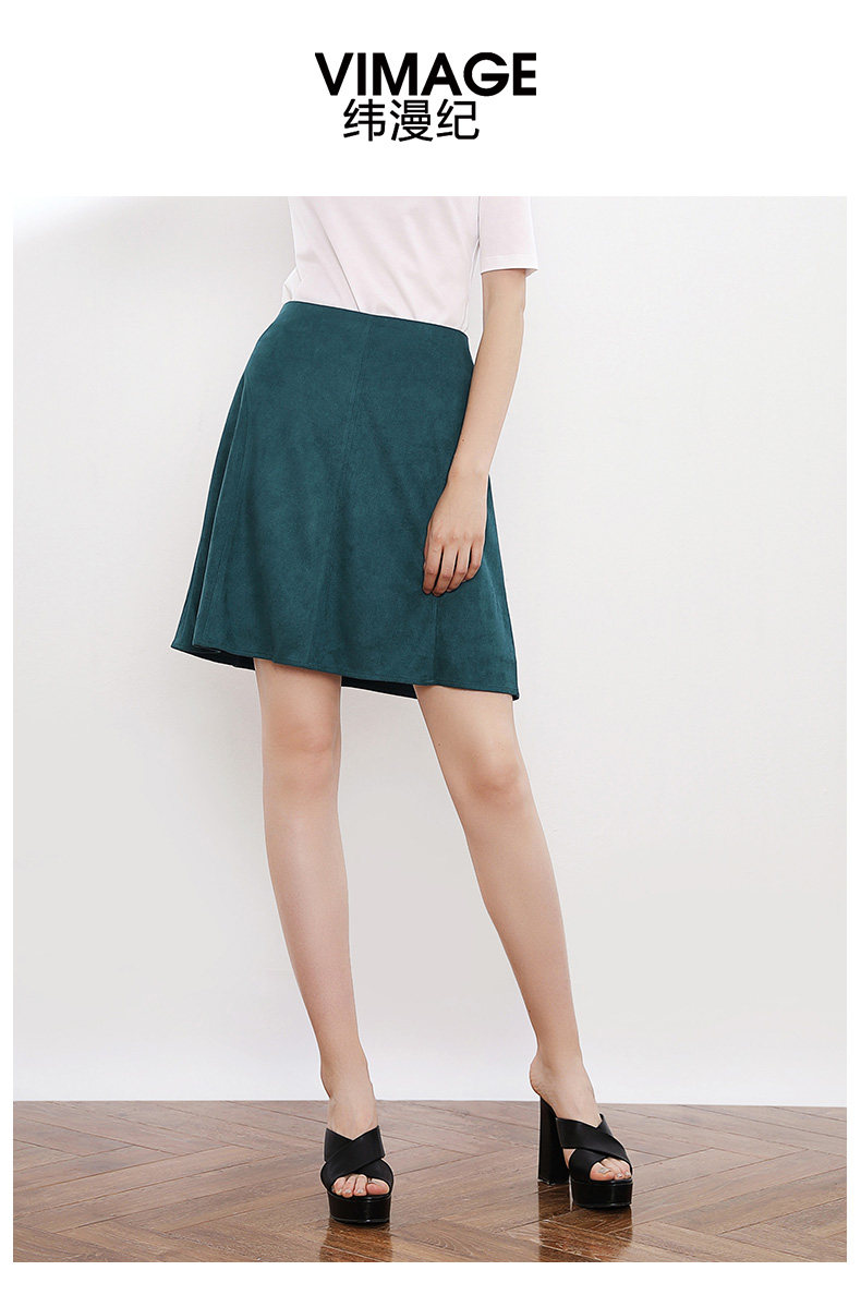 VIMAGE纬漫纪品牌女装简约休闲A字裙纯色高腰半身裙V906503