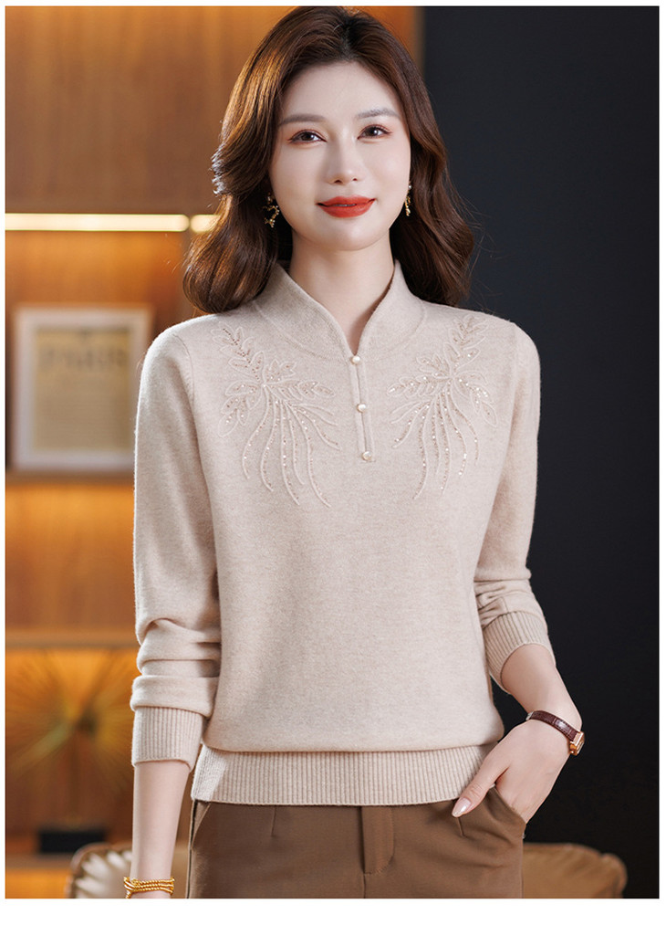 中老年妈妈纯羊毛衫旗袍领32575 商品图1