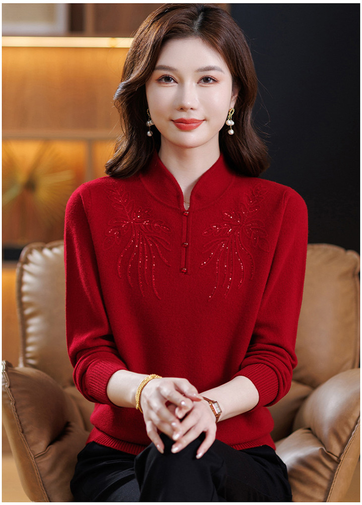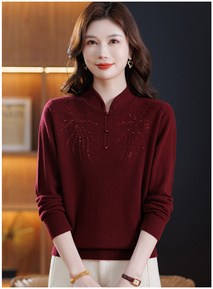 中老年妈妈纯羊毛衫旗袍领32575 商品图0