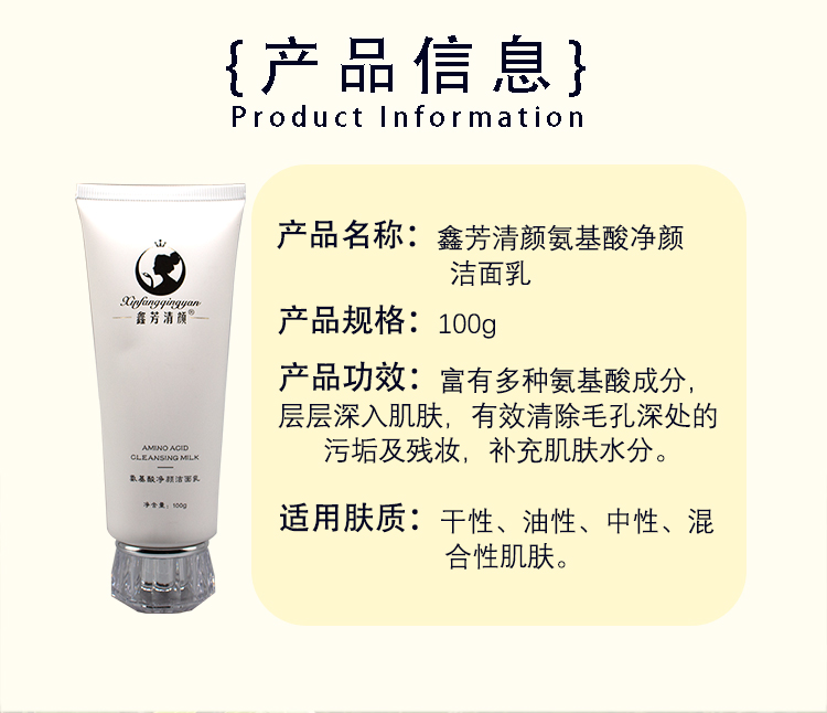 鑫芳清颜氨基酸净颜洁面乳100g美容院正品直发深层清洁补水嫩滑