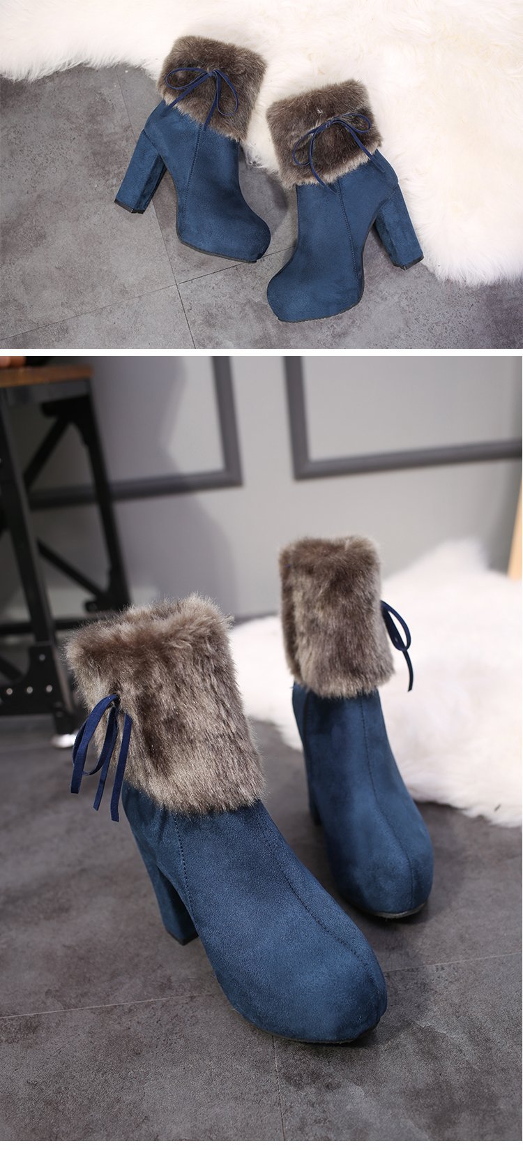 NN-0639冬季加绒保暖厚底防水粗跟高跟马丁靴