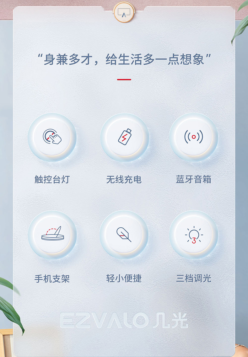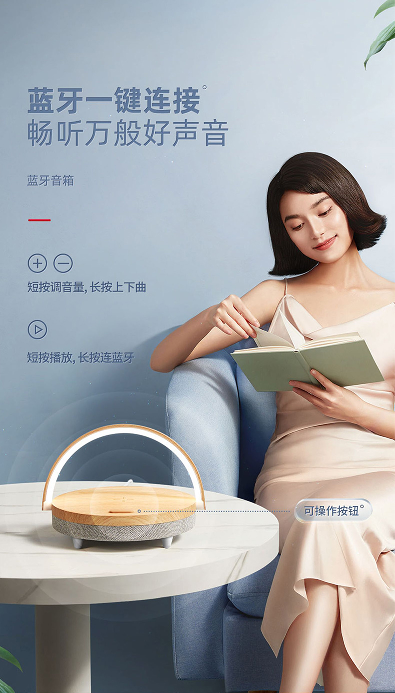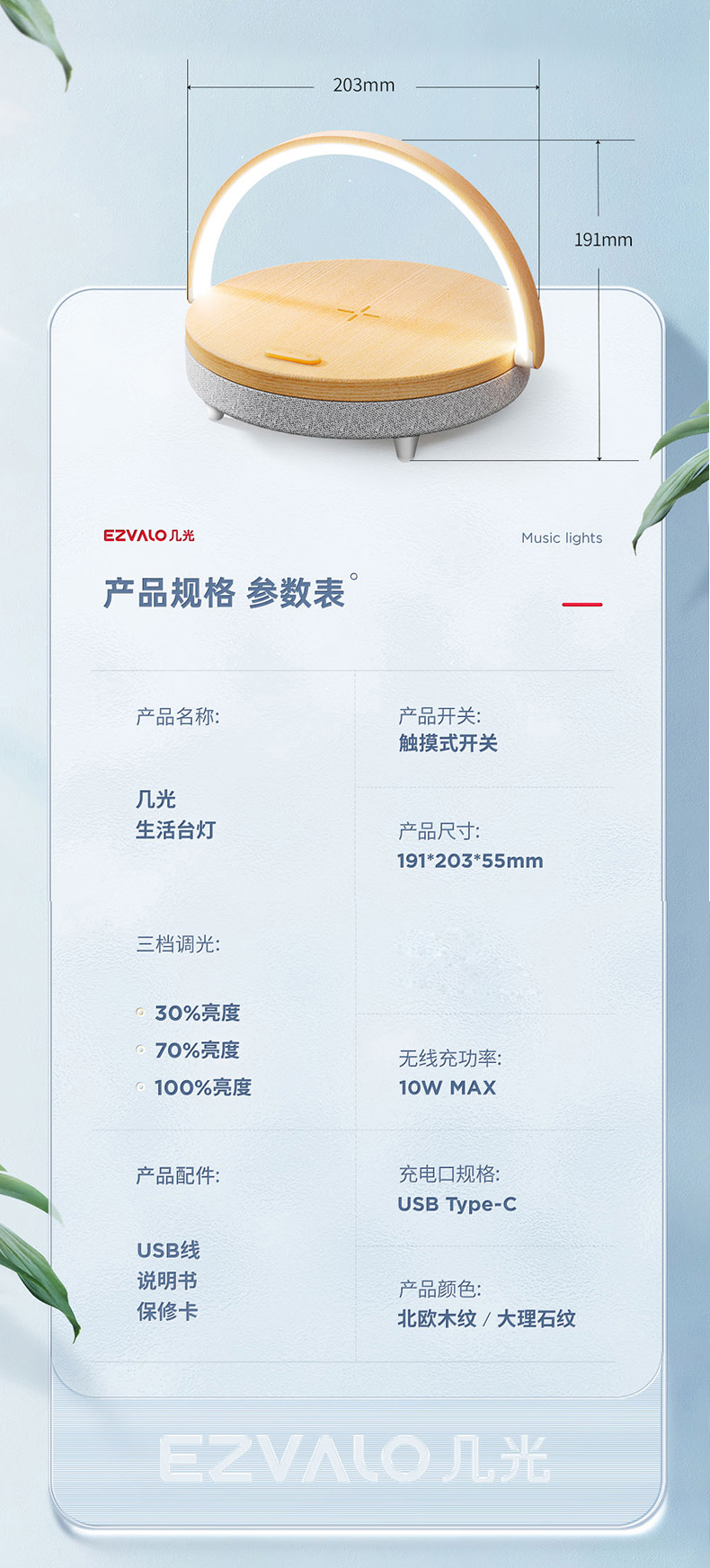 几光无线充电蓝牙音箱音乐台灯 浅木纹