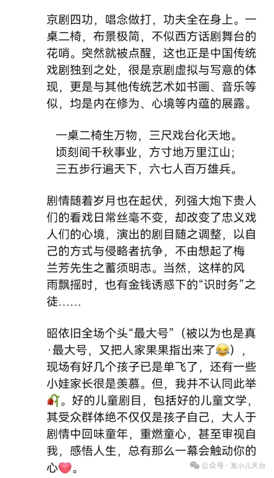 一会儿开怀大笑,一会儿备受感动。这是一部情绪饱满的戏,更是一部见证梦想之花的独特经历。