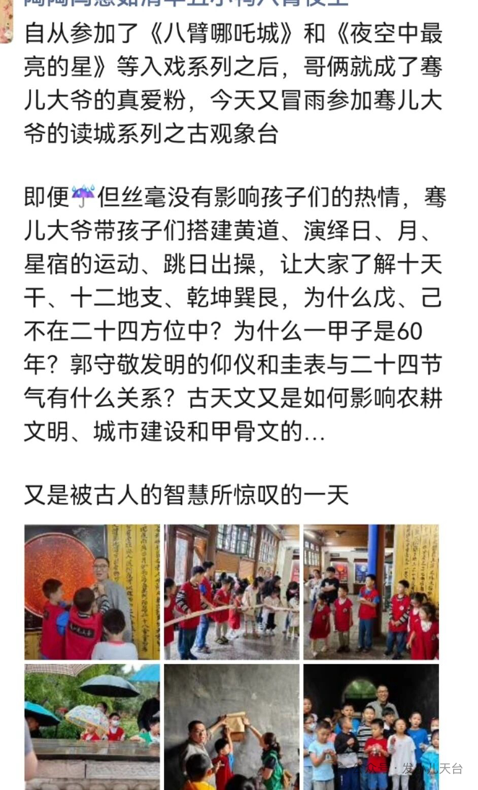 上午入戏《日月星辰作的钟》带着“时间是什么”的问题,穿越回没有钟表的远古。“天地玄黄,宇宙洪荒。日月盈昃,辰宿列张。”让我们化身小小时间侦探去溯源“时间”,去了解先民们如何感知时间,记录时间,创造历法利用时间。