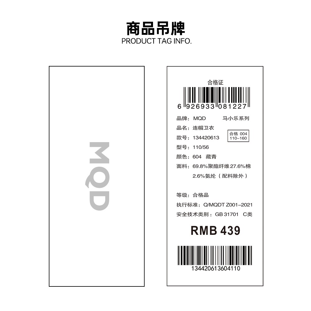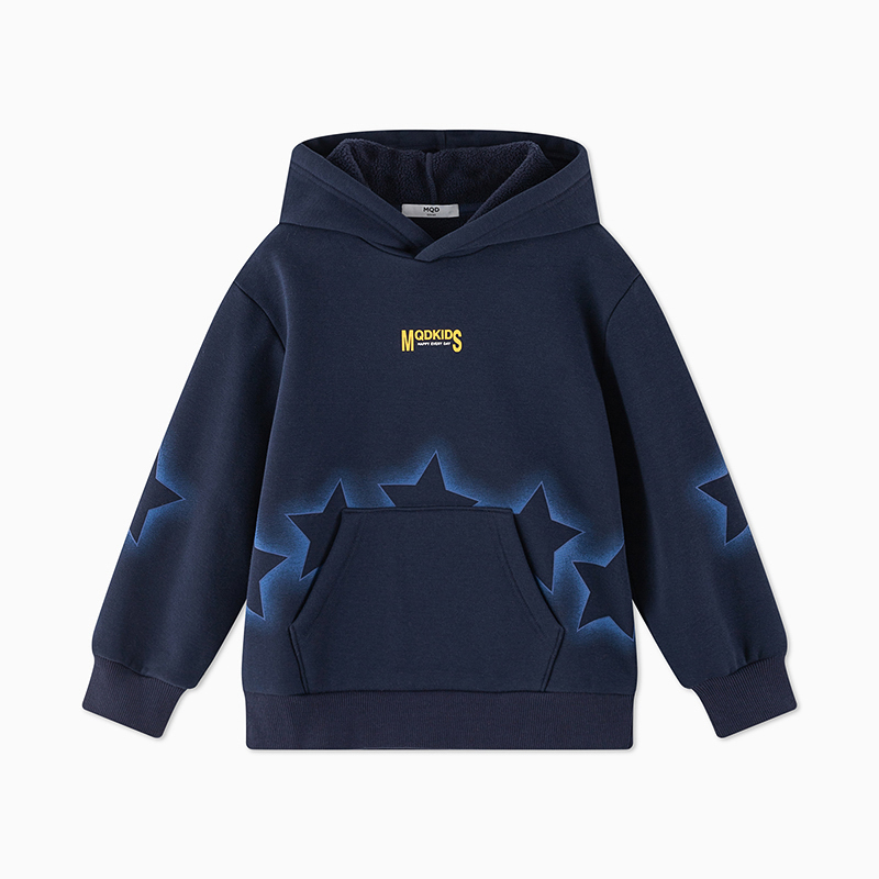 【MQD】男童冬季保暖舒适加绒潮酷印花卫衣