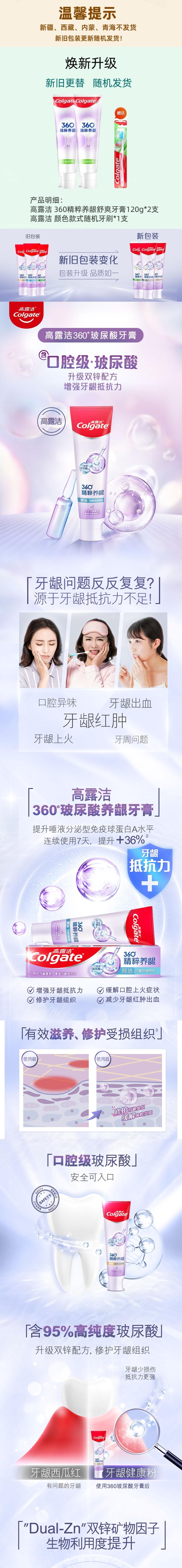 高露洁 360精粹养龈舒爽牙膏120g*2支+牙刷1支 ct120s2y1