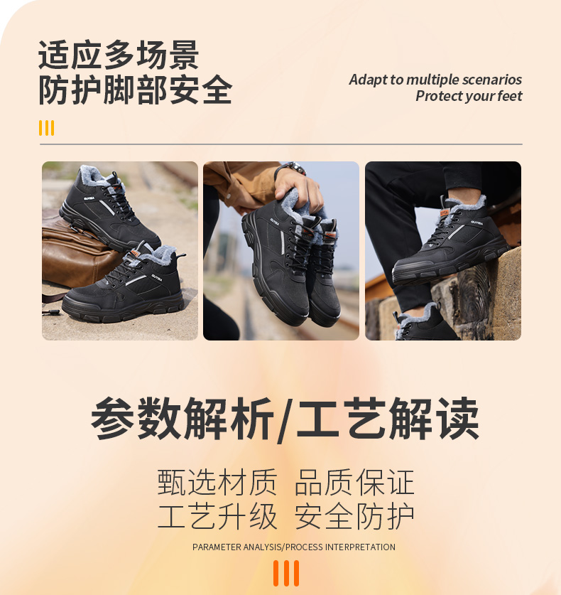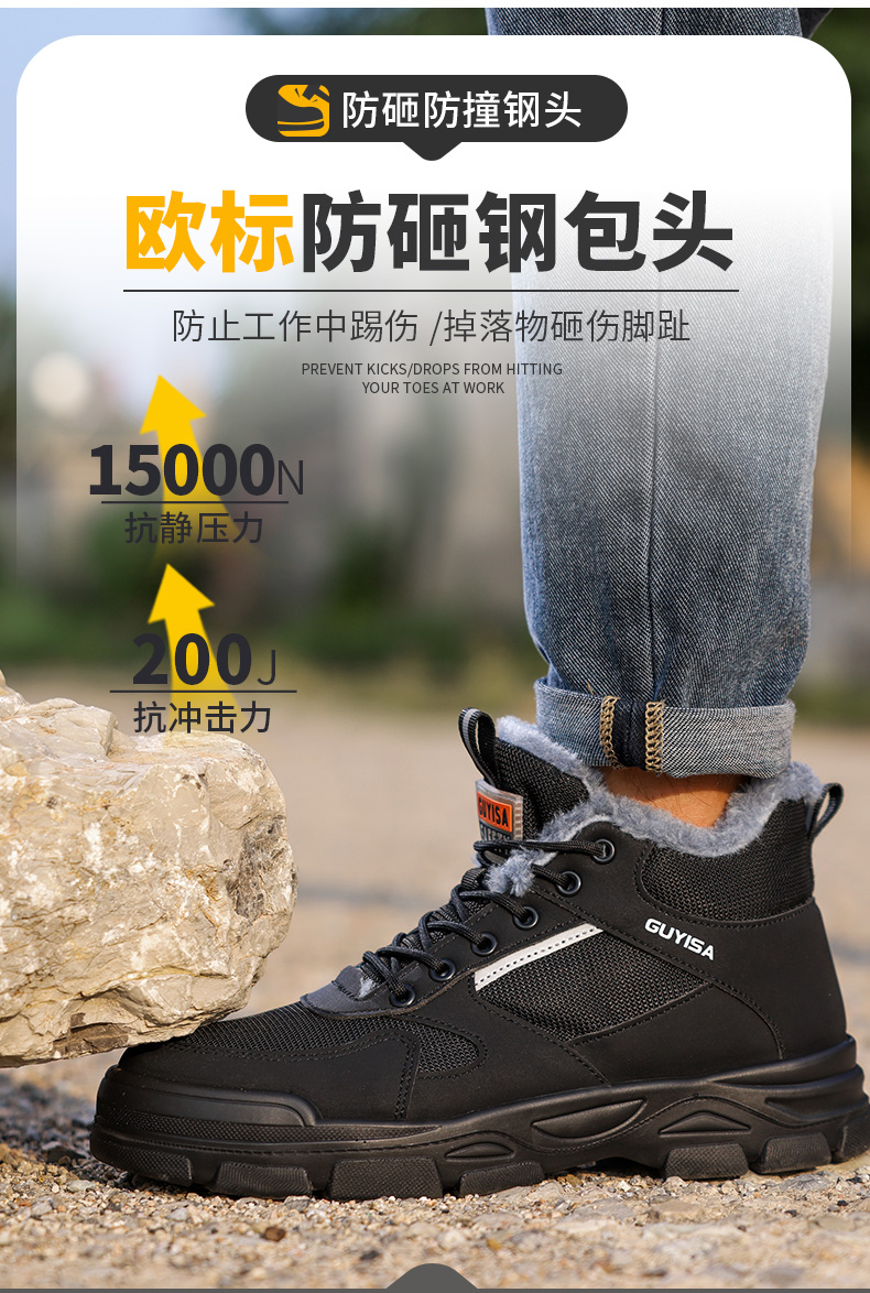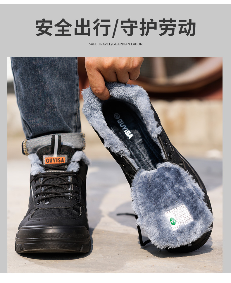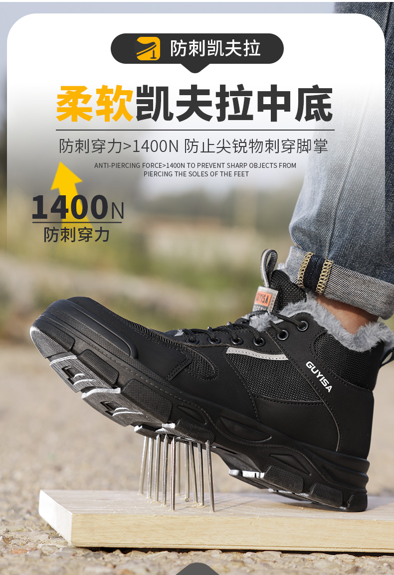 冬季加绒实心底劳保鞋男士工地工厂耐磨安全鞋LA认证