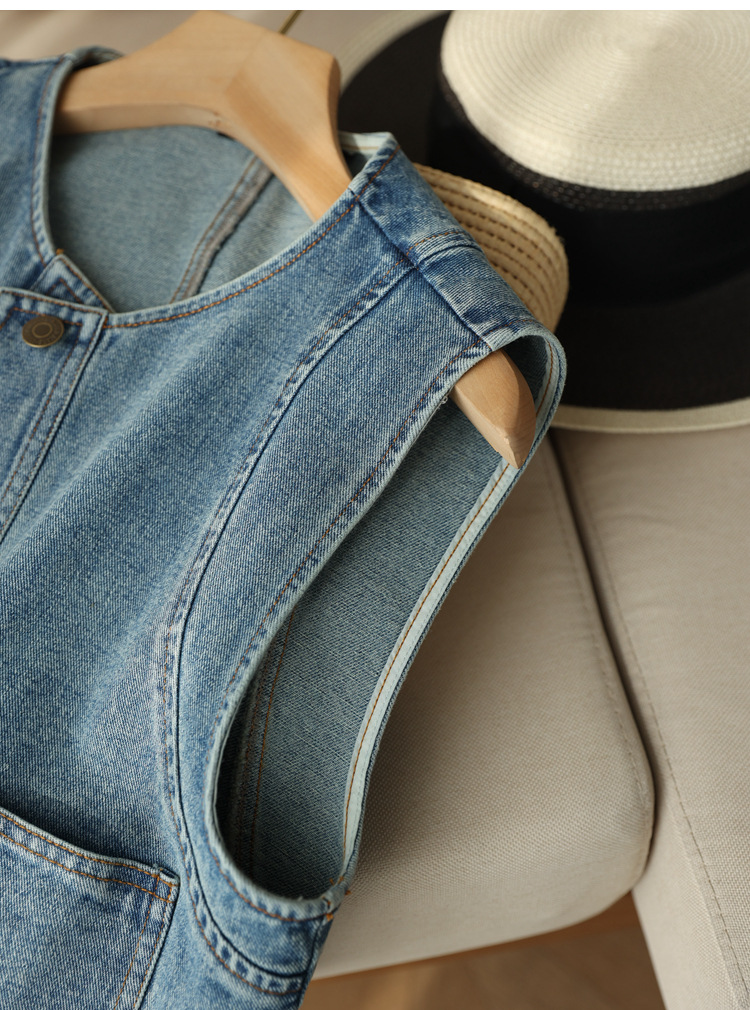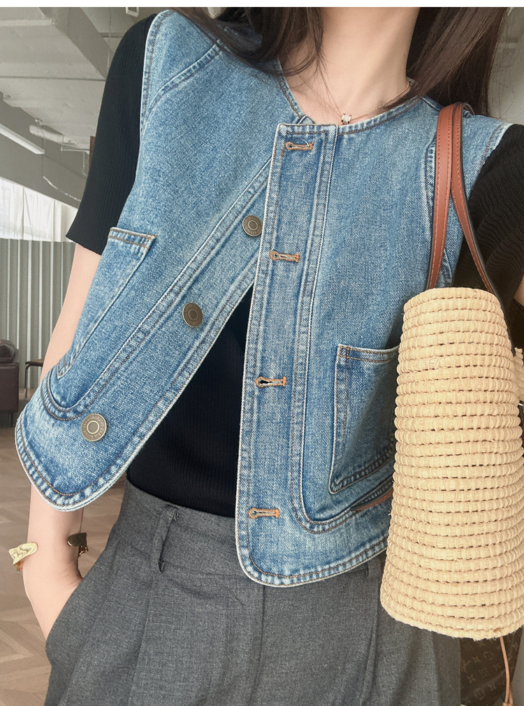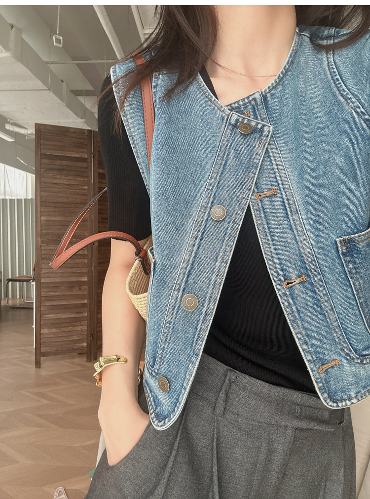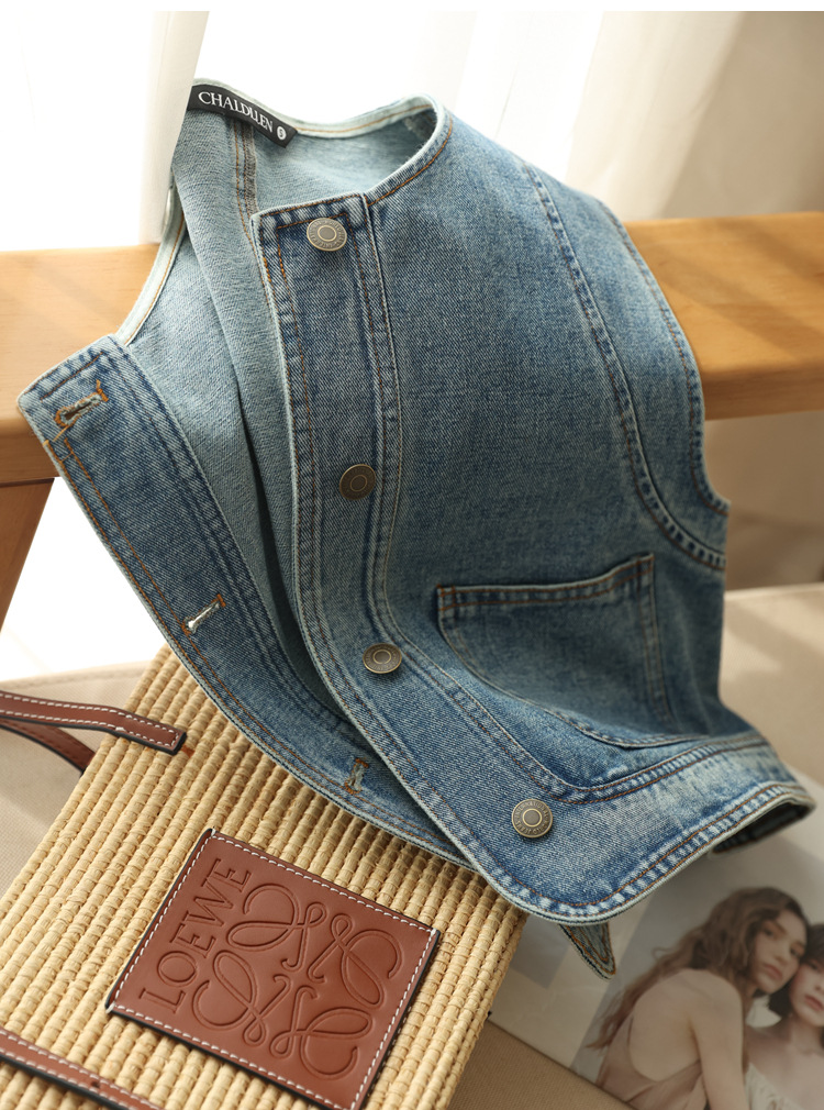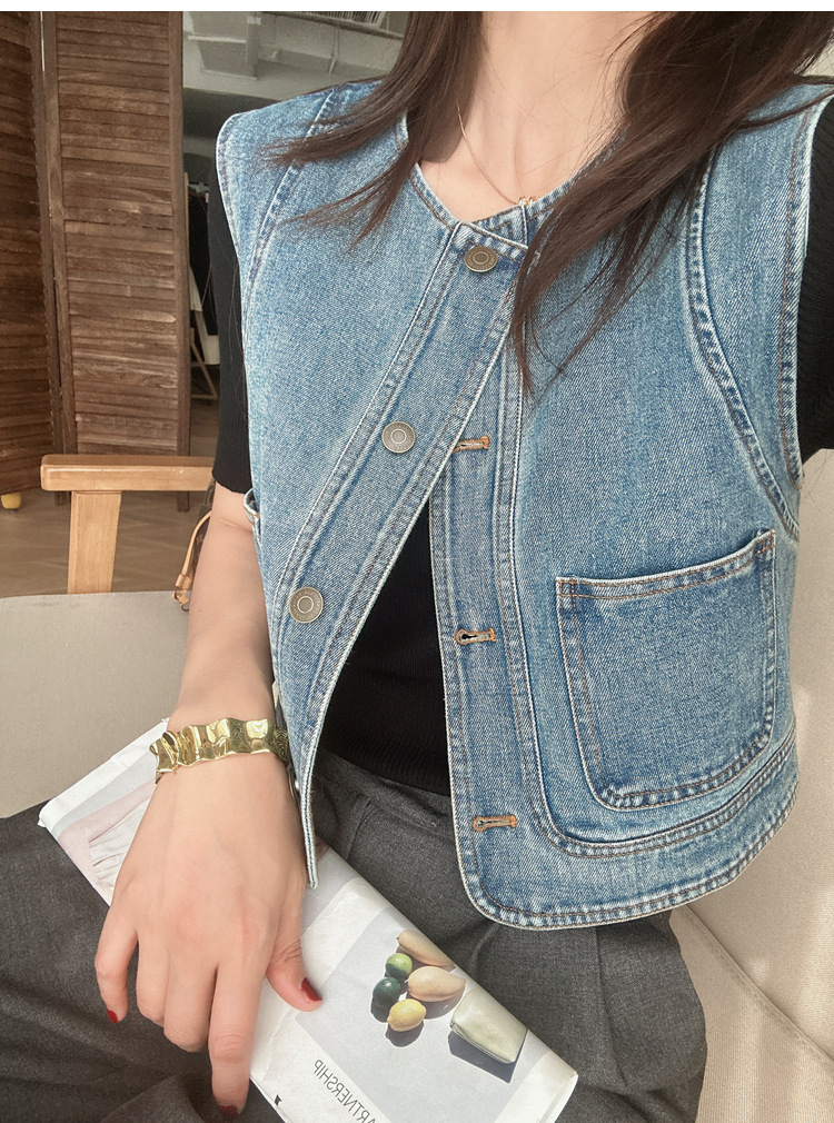 雀说时髦洋气百搭叠穿牛仔马甲女春夏宽松短款小个子无袖外套休闲上衣AL